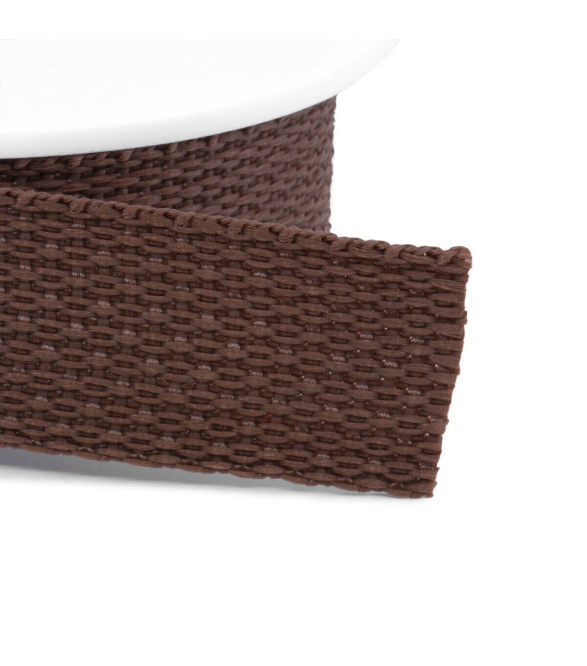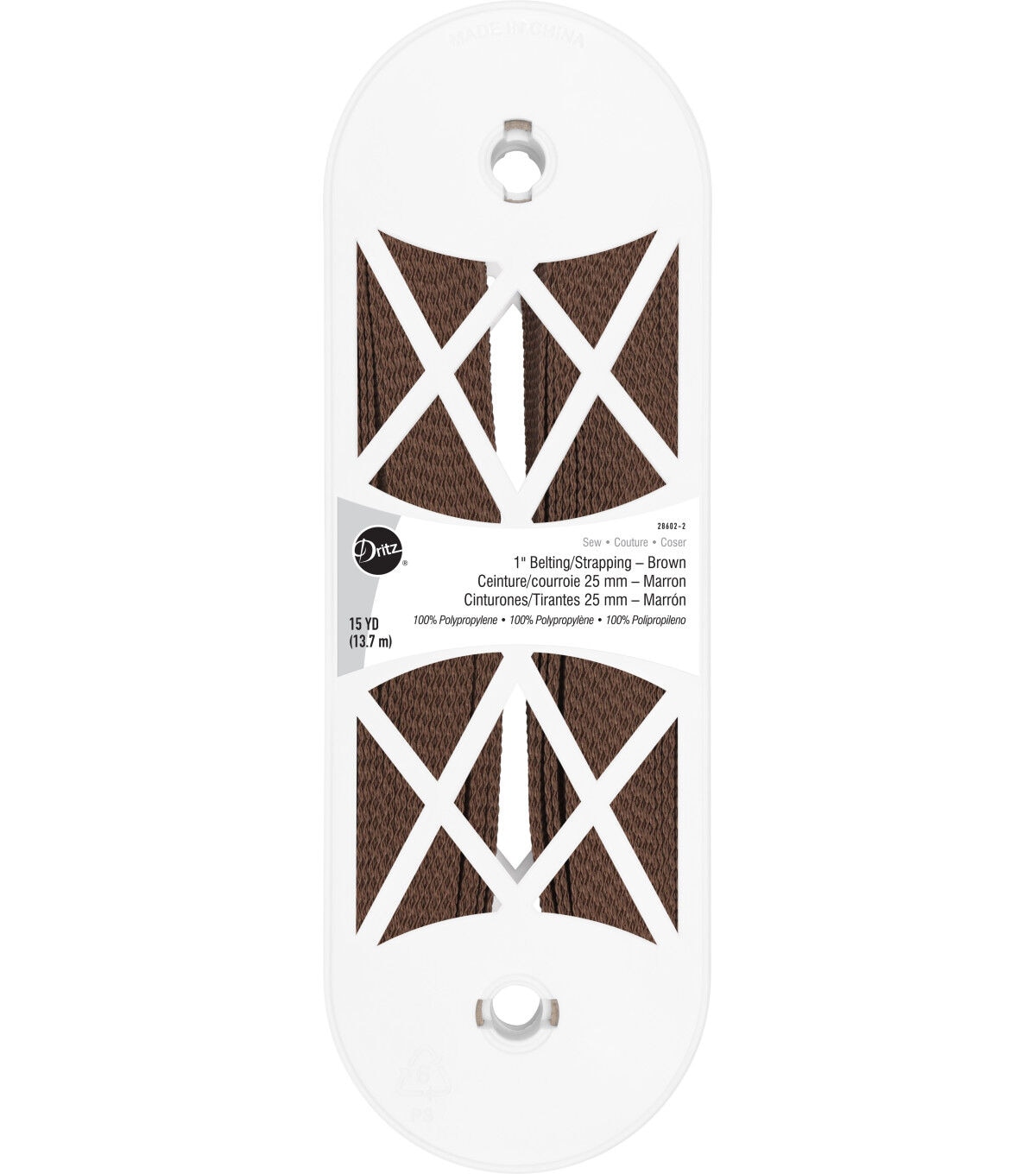 Use the Dritz Polypropylene Belting - Brown with fashion buckles or parachute buckles to make belts or add straps to a variety of sewing accessories. This belting is sold by the yard and comes on a 15-yard reel. It is made from polypropylene and is functional as well as fashionable.