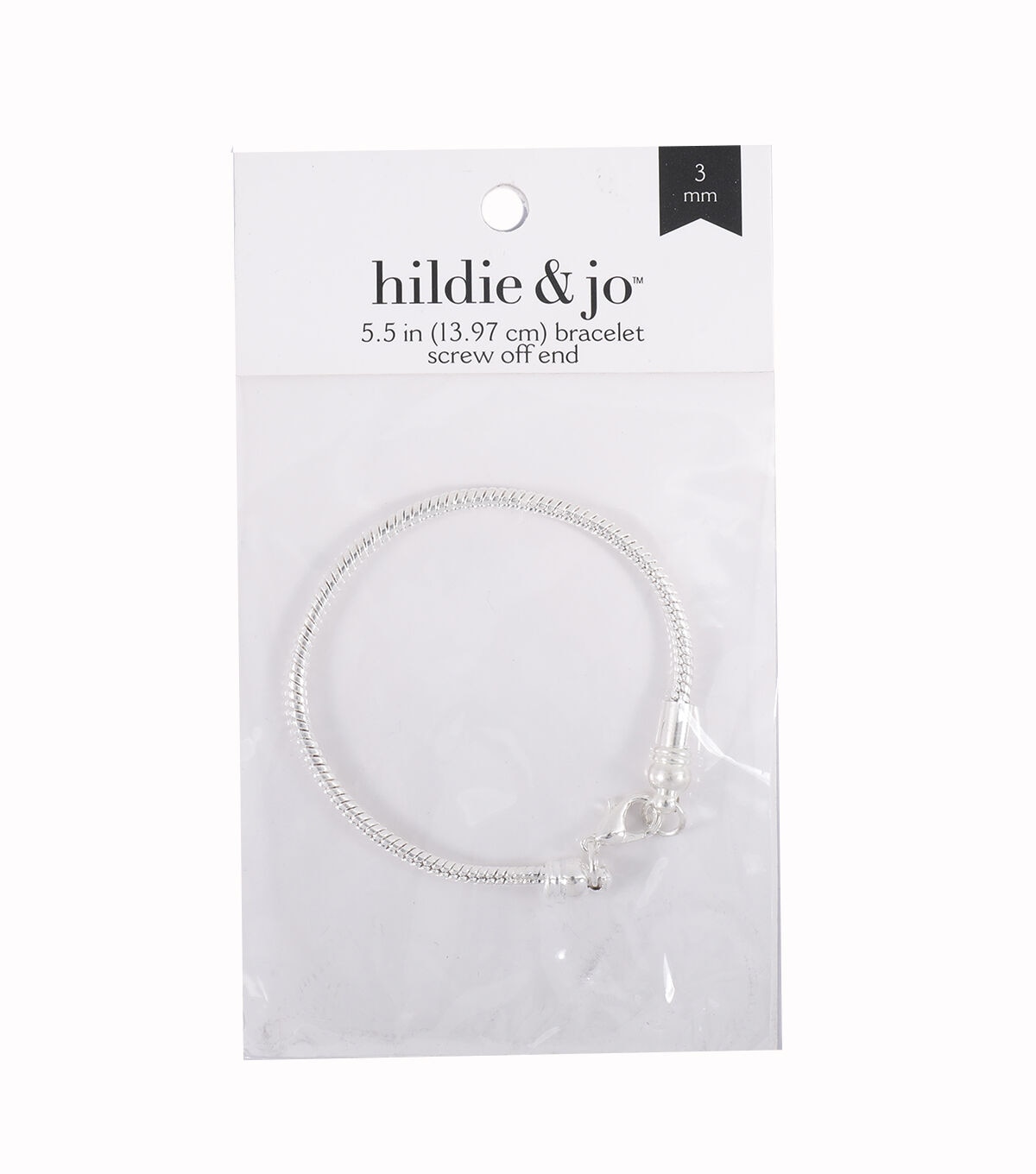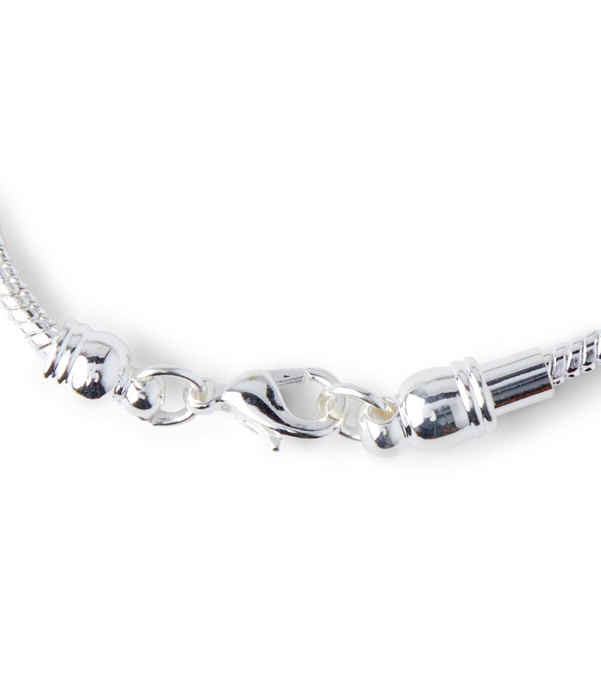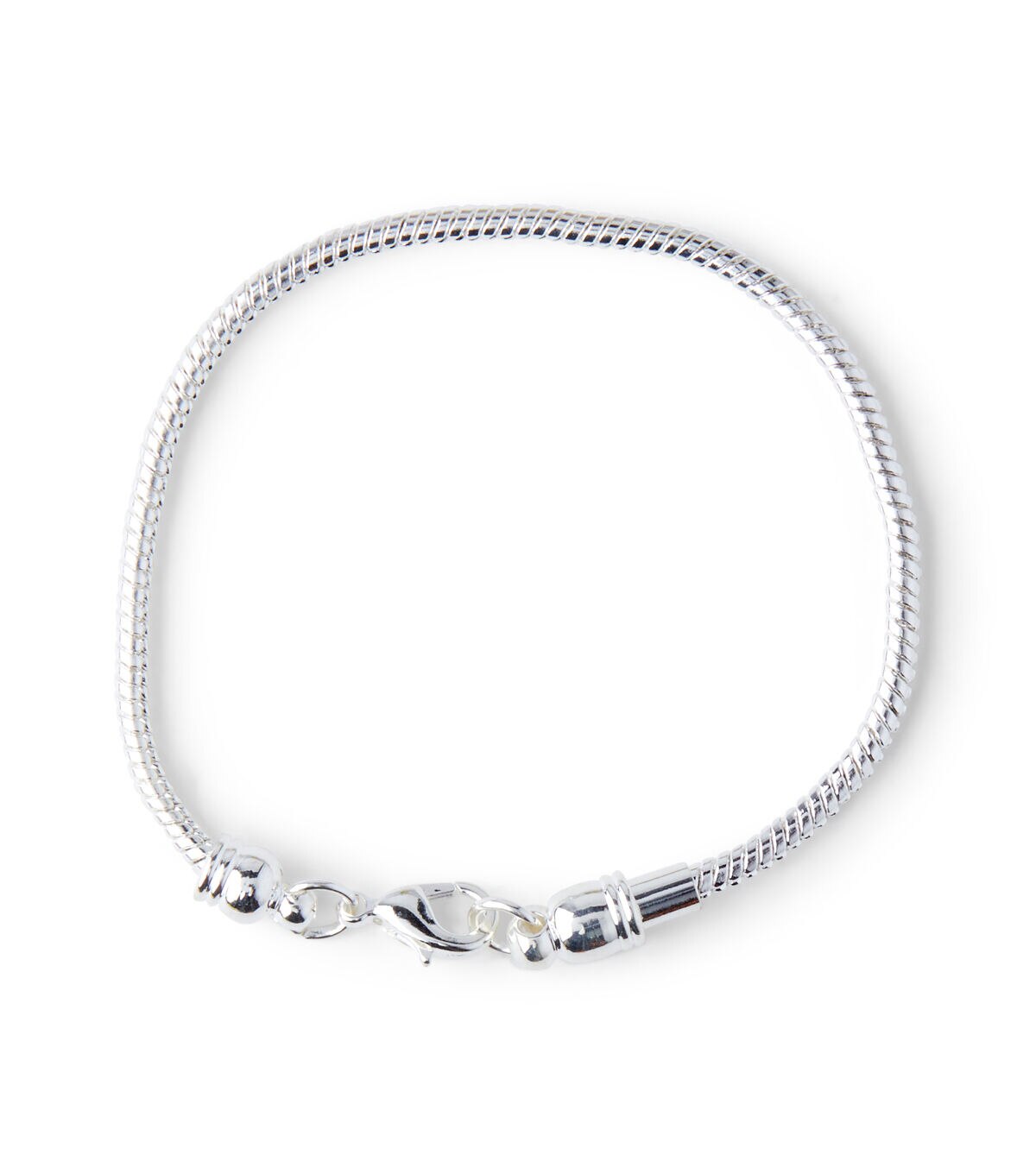 Create your own individual bracelet design simply and easily with this silver snake chain bracelet. Wide-hole beads slip over the end clasp, just refasten when you're finished. Has swivel clasp so bracelet won't tangle. Mix colorful glass beads, metal spacer beads and sparkly rhinestone rimmed beads to make an attractive fashion bracelet in minutes. Plus, you can rearrange and replace the beads whenever you wish. Interchangeable with other popular brand wide-hole beads. 5.5 inches long.