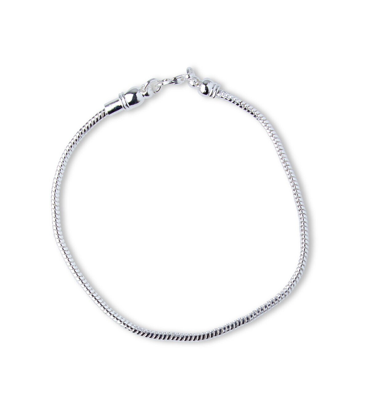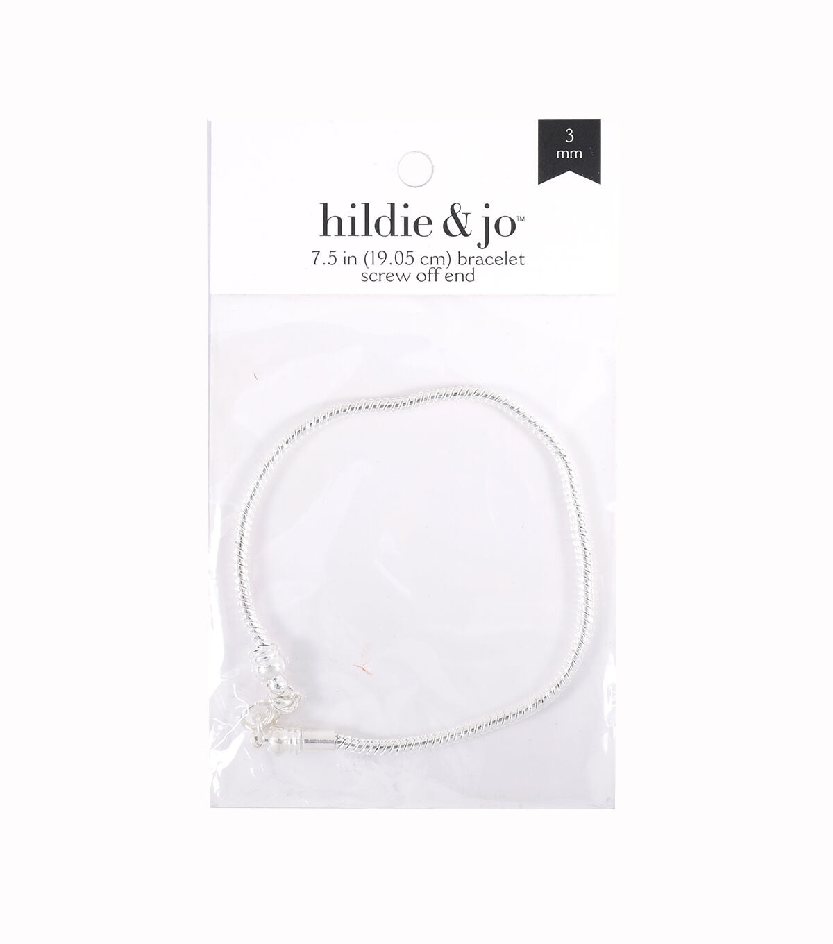Create your own gorgeous bracelet with this bright silver flexible twist end bracelet. Just take off an end to add colorful metal lined Mix and Mingle wide hole beads, charms and stopper beads. Interchangeable with other popular brands. 7-1/2 inches long, Color: Silver