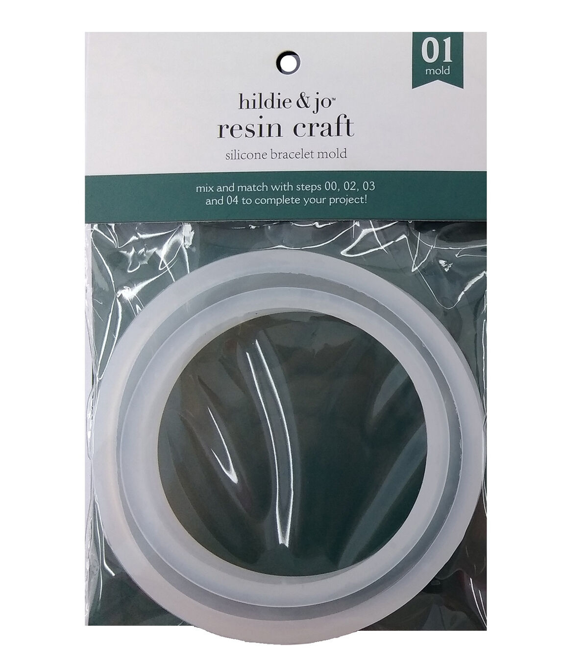 Create a unique bracelet using this silicone bracelet mold. There is one bracelet mold that is smooth and round. Add glitter, dried flowers or charms to create a one of a kind item. Use these to customize your resin craft. Resin crafts have four easy steps: select mold, pour resin, customize, cure. Create your own unique piece!