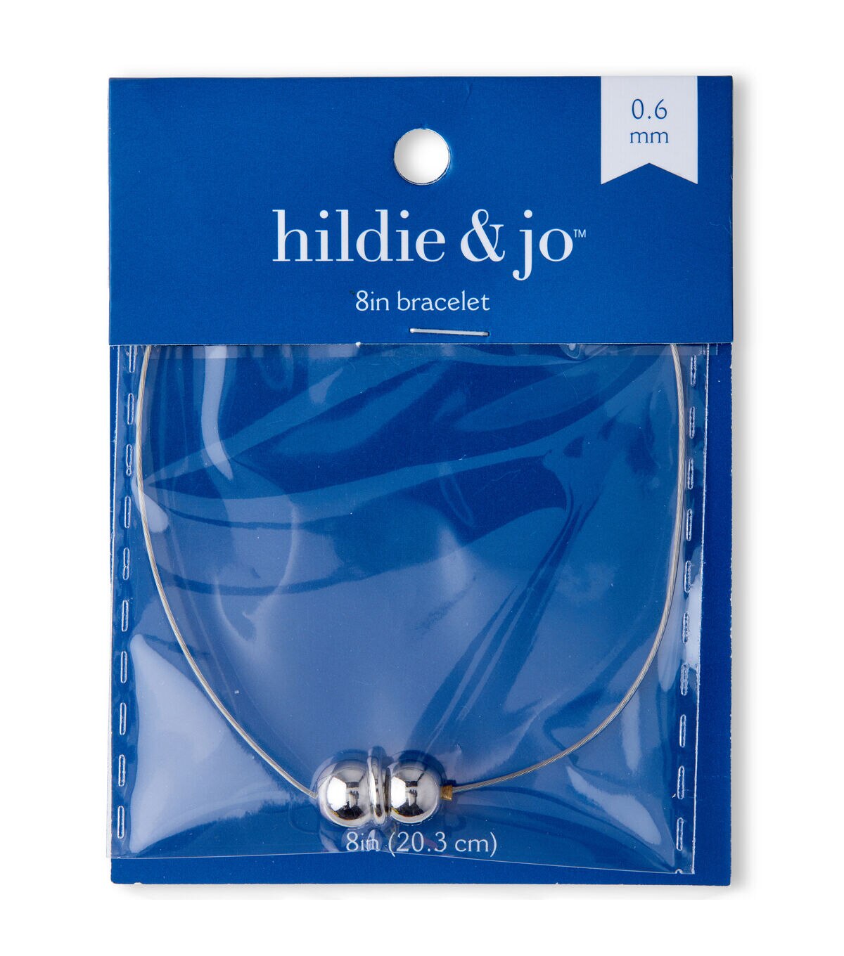 Use the hildie & jo Magnetic Clasp Bracelet to create stylish homemade bracelets. The metal bracelet offers minimalistic style and comes with a secure magnetic rounded ball closure. Embellish such bracelets with trinkets and other accents or loop lettered blocks to spell out names and personalize them so you can gift these magnetic bracelets as cherished keepsake to family and friends.