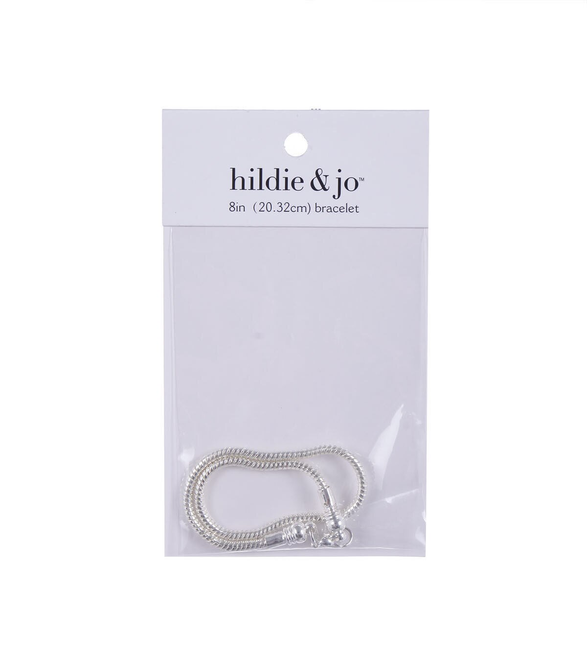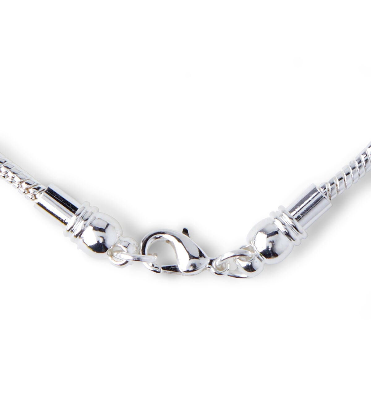 Create your own gorgeous bracelet with this bright silver flexible twist end bracelet. Just take off an end to add colorful metal lined hildie & jo wide hole beads, charms and stopper beads. Interchangeable with other popular brands. 8-1/2 inches long, Color: Silver