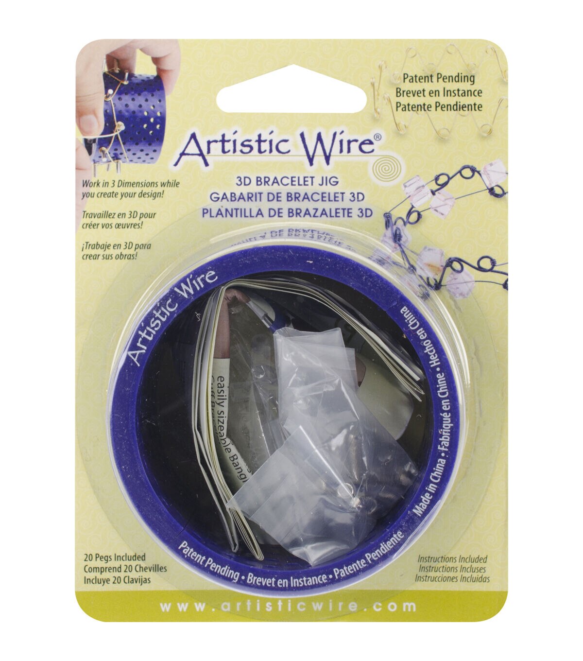 Enjoy making fun accessories for yourself, or to give as gifts, using the Artistic Wire 3D Bracelet Jig With 20 Pegs. This pack comes with everything you need to get started, including a 2.75-inch jig base, 20 removable pegs and peg fasteners each, as well as easy-to-follow instructions. Use this bracelet jig to design some DIY bracelets, bangles and other accessories in a jiffy. The finished bracelet measures two inches in diameter, which will fit most wrists.
