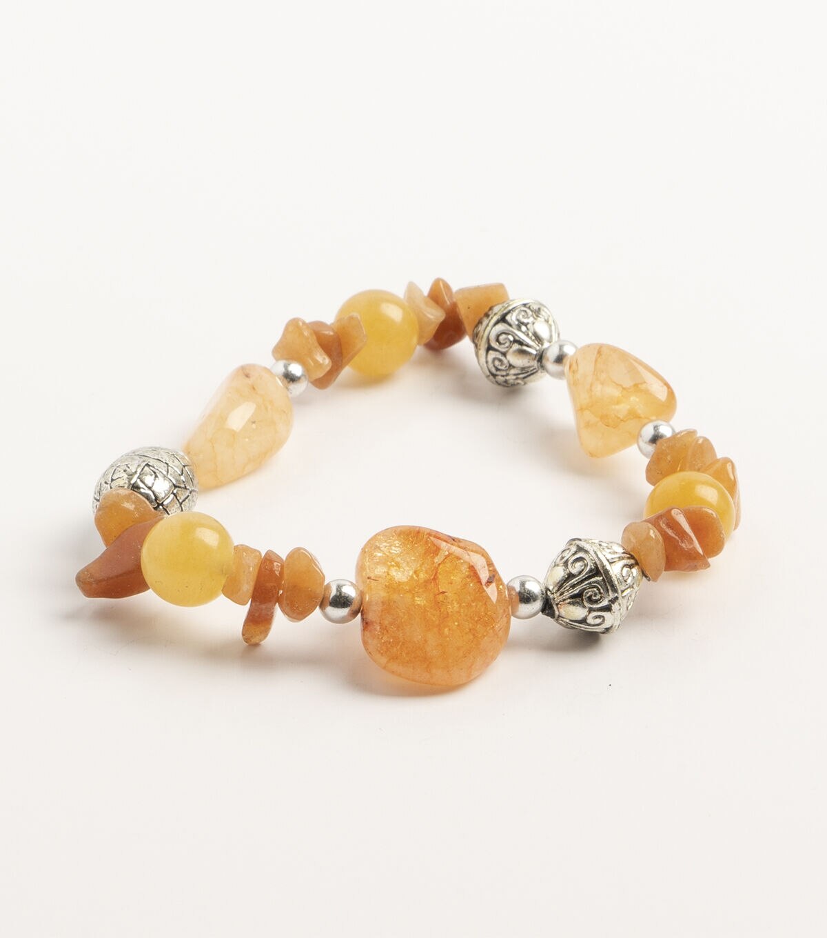 Semi-Precious Stretch Bracelet (Dyed Crystal) Assorted Shape Citrine With Metal Beads make a great accessory for any occasion, from casual outings to formal events, and can be paired with other jewelry pieces to create a stylish and sophisticated look.