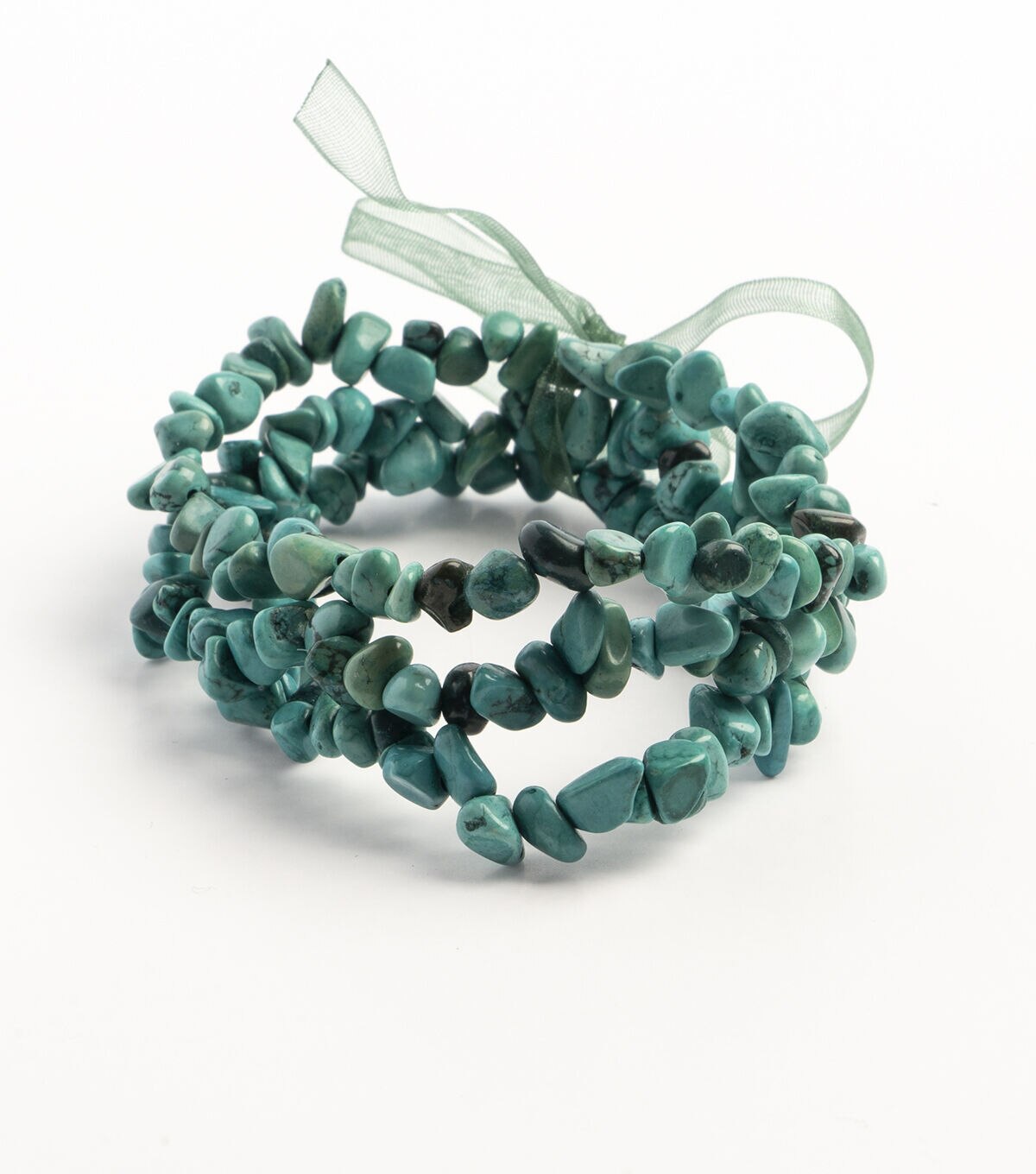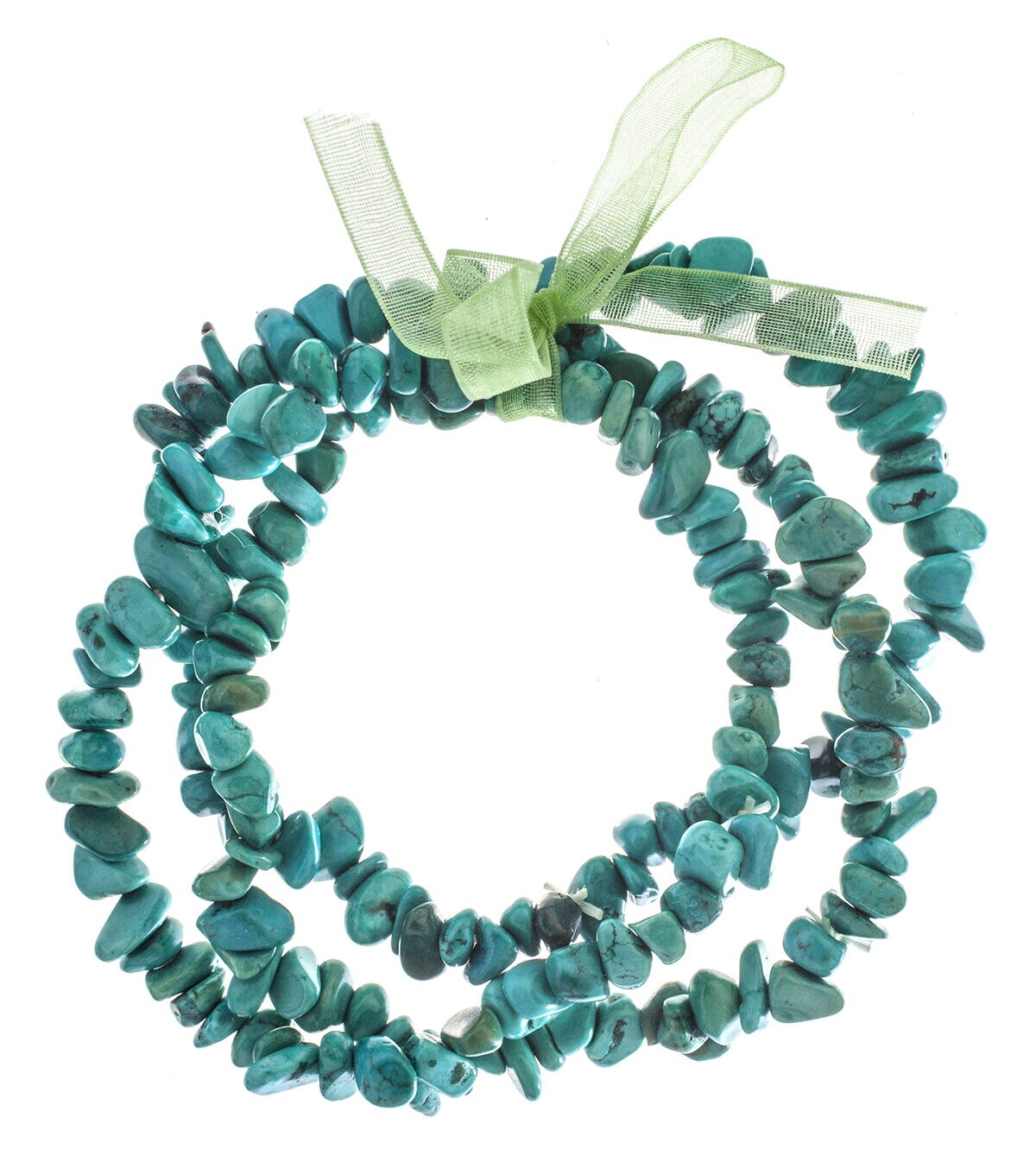 Semi-Precious Stretch Bracelet Dyed Stabilized Turquoise Chips 3 Strand with Bow make a great accessory for any occasion, from casual outings to formal events, and can be paired with other jewelry pieces to create a stylish and sophisticated look.
