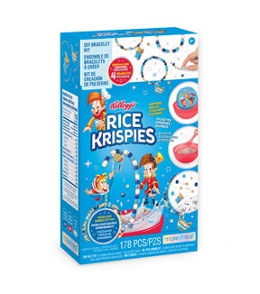 DIY bracelets with a cereal-sly fun twist! Using the included bowl and spoon, place each pouch in water and watch as it dissolves to reveal mystery bags – just like magic! Each kit contains everything needed to serve up 4 cereal-sly cute Kellogg’s Froot Loops-themed bracelets, including cord, charms, and colorful beads. Tweens will find Snap, Crackle, and Pop on the exclusive charms for their bracelets – the perfect accessory for everyday! An exciting activity for creative tweens from start to finish, presented in an uber cute cereal-themed package for extra fun – don’t forget to check the nutrition label! Who doesn’t love cereal?Contains2 dissolvable pouches, 3 mystery bags, 1 bowl, 1 spoon, 1 clear elastic cord 1.5 m (1.6 yd), 1 curb chain, 2 charms, 166 assorted beads, 1 instruction sheet.