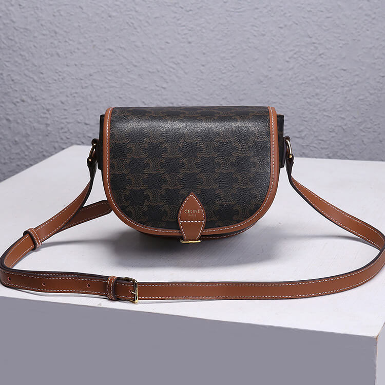 Replica Celine Medium Folco Bag in Triomphe Canvas and Calfskin