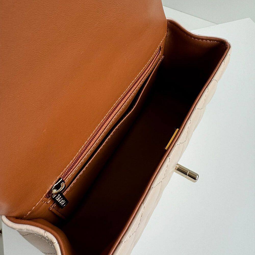 Light gold hardware, lambskin