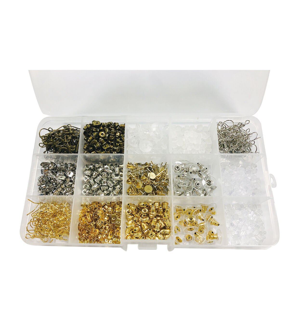 The hildie & jo Small Earrings Component Kit will make a great addition to your jewelry-making essentials. This box comprises different earring components such as hook clasps, earring backs, studs and more. Use them to complete your DIY earring projects or team them with beads and charms to create earrings, necklaces and more.