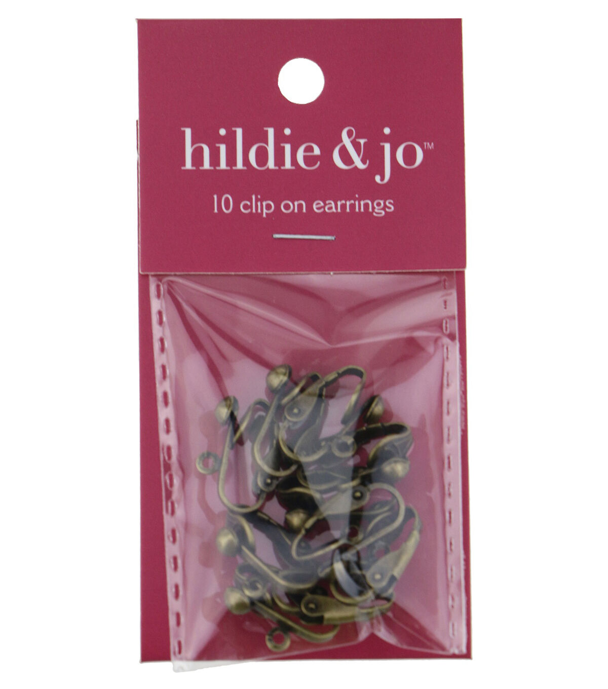 Complete your DIY projects with these hildie & jo Antique Gold Clip on Earrings. These clip-on earrings feature an antique gold finish that creates a vintage-inspired, eye-catching look. Use these rings for a variety of jewelry-making projects. Each pack contains 10 pieces of clip-on earrings.