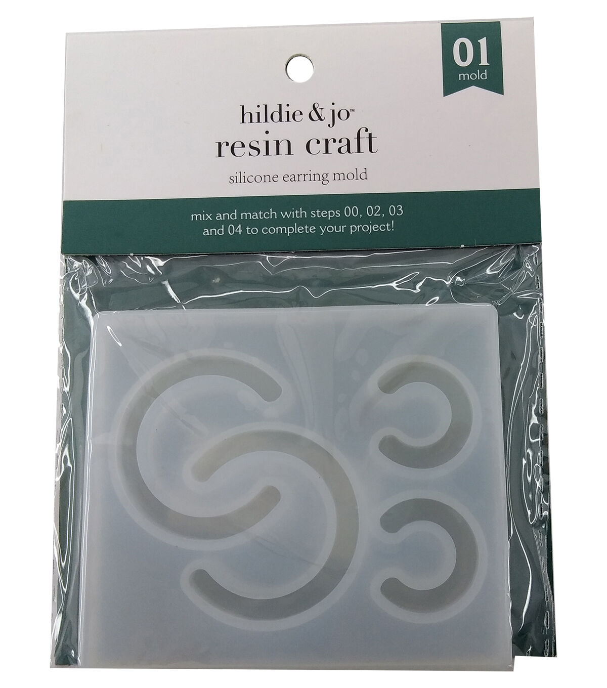 Create a unique earrings using this silicone mold. The mold has two pair of earrings, both are half hoop earrings. One pair is large, the other is small. They are smooth on all sides. Add glitter, dried flowers or charms to create a one of a kind item. Use these to customize your resin craft. Resin crafts have four easy steps: select mold, pour resin, customize, cure. Create your own unique piece!