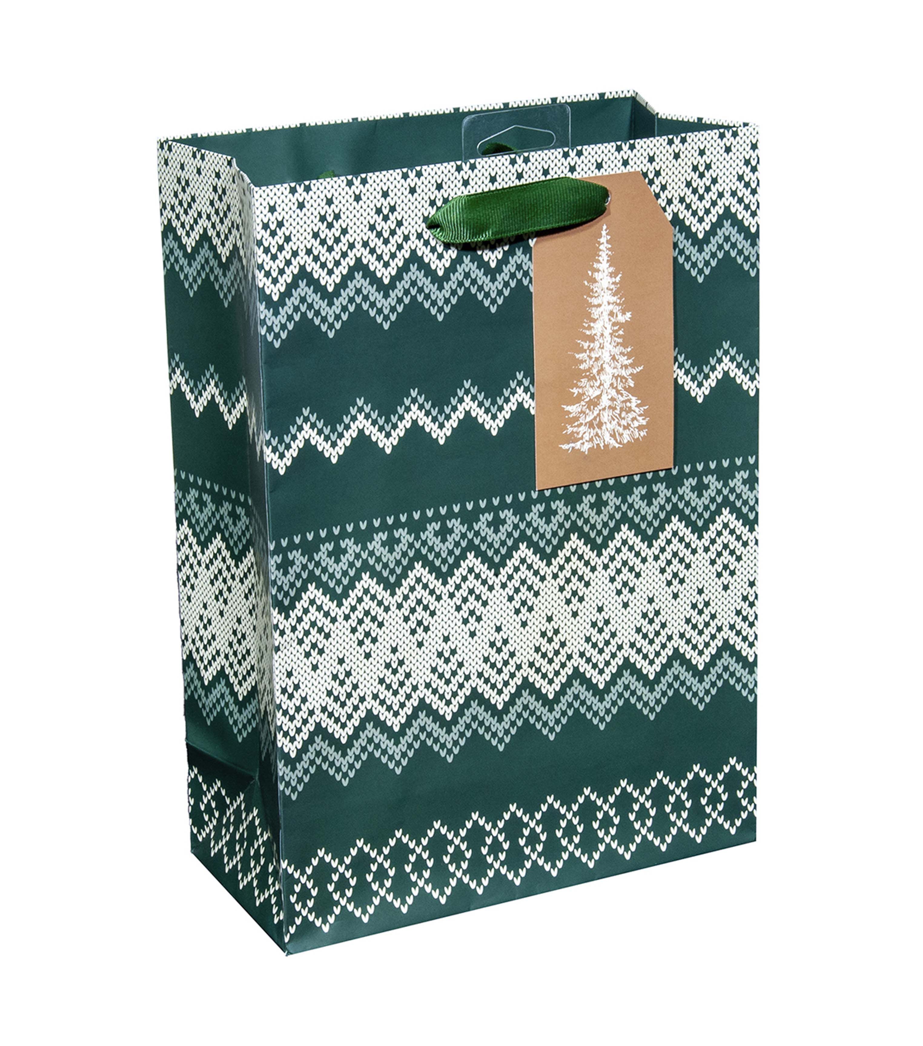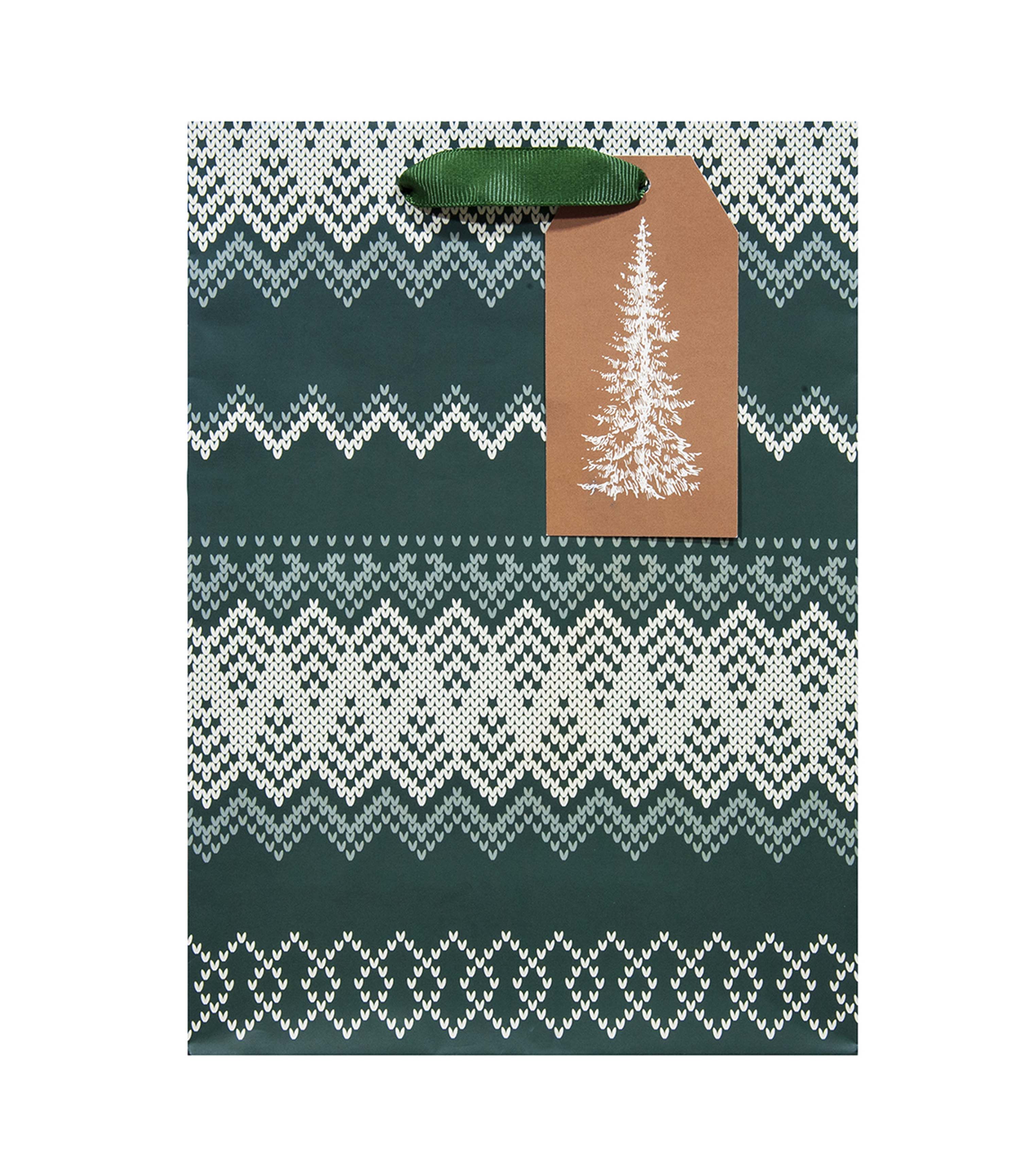 Make the gift-exchange ritual more special this holiday with the beautiful Christmas Sweater Print Gift Bag by Place & Time. This gift bag flaunts a green shade and a sweater pattern that is sure to make your presents stand out. It comes with a gift tag flaunting a print of a spruce tree. You can fill the bag with jewelry and decor accents and gift it to your loved one on Christmas morning.