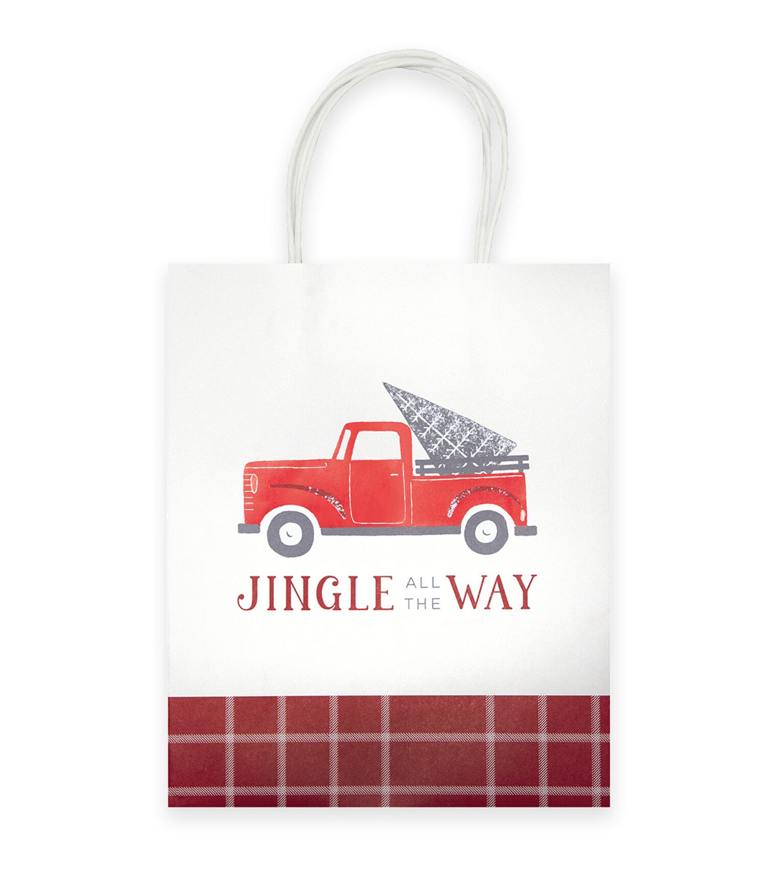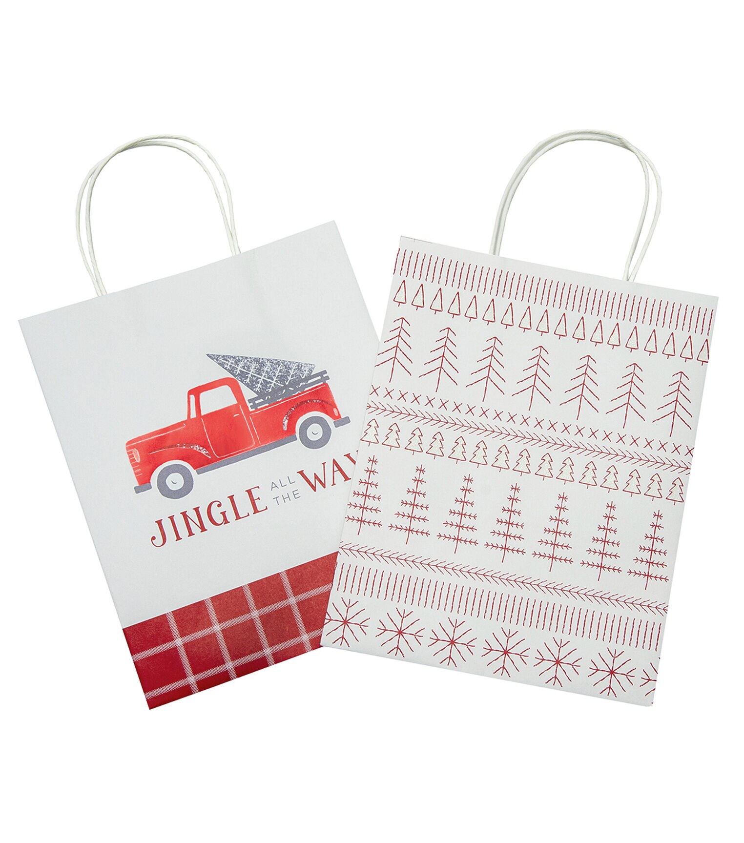 Gifting your loved ones will be a breeze this festive season with the Christmas Jingle All the Way Gift Bags by Place & Time. This pack contains two gift bags. One of them sports a print of a red truck carrying a spruce tree along with the words ‘Jingle All the Way.’ The other flaunts patterns of spruce trees in red against a white base. You can use them to present books, small toys, holiday ornaments and more.