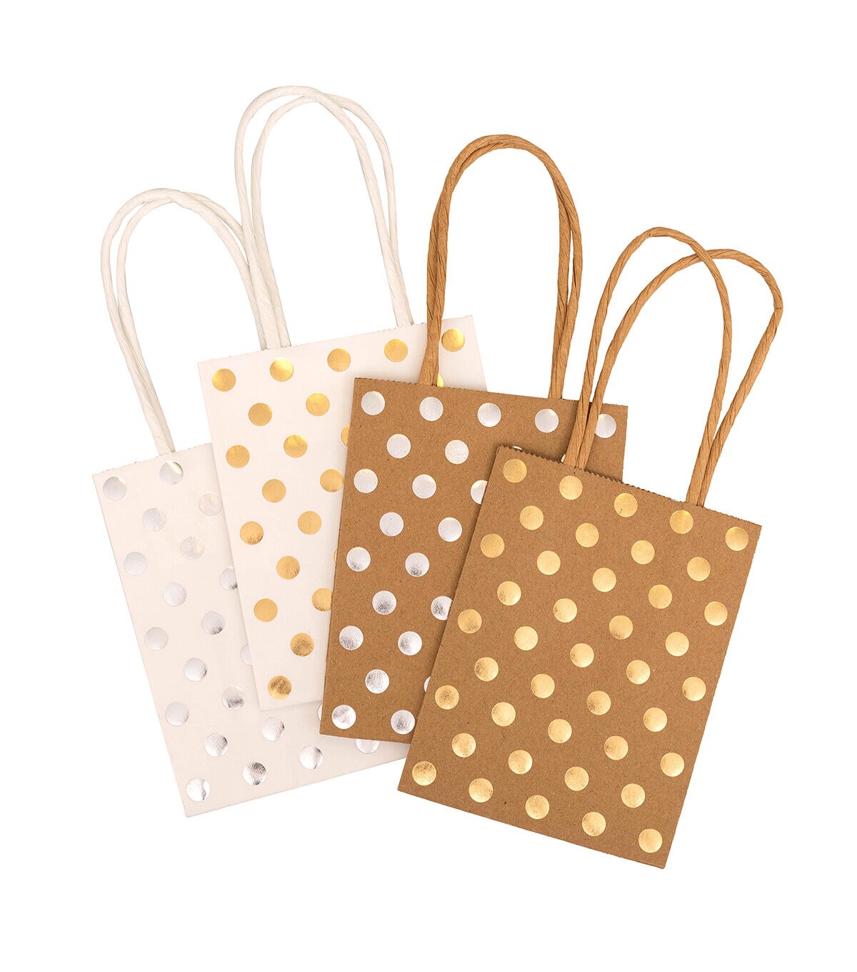 American Crafts 4 pk Mini Foiled Kraft Gift Bags - Dots
