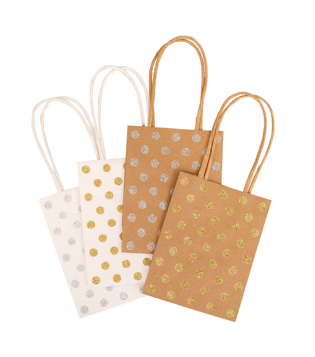 Pair your perfect gift with a beautiful bag! Gift bags come in a wide variety of colors and sizes to choose from, and can be customized with stickers, washi tape, and other accents. This package includes 4 gift bags, each measuring 3.875 x 5 x 2 inches. Great for birthdays, holidays, weddings, and more.