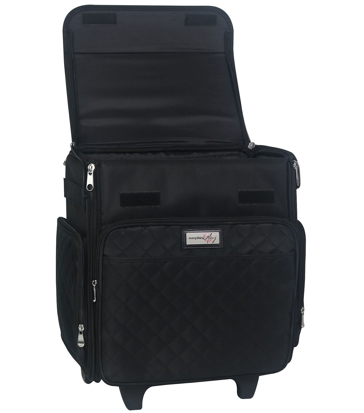 The Everything Mary Collapsible Rolling Craft Bag is the ultimate storage solution for any storage needs. This rolling organizer cart is constructed with durable polyester and features premium zippers, piping, and an Everything Mary emblem. Seventeen total storage spaces are built into this scrapbook storage case for all of your tools, sewing notions, or other supplies. The main compartment on this rolling craft organizer is perfect for scrapbooking IRIS boxes, paper, crafts, containers, and so much more! In addition, this scrapbook rolling tote features a telescoping locking handle and a durable wheelset for secure craft storage—the Everything Mary Collapsible Rolling Craft Bag was made with crafters in mind.