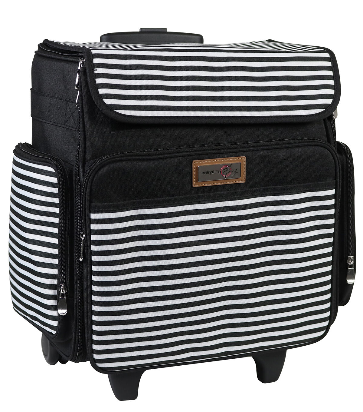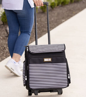 • Everything Mary 15.5" Black & White Stripe Collapsible Rolling Craft Bag