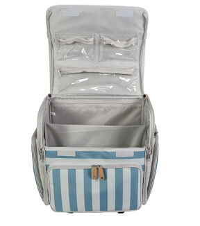 The Everything Mary Deluxe Collapsible Rolling Craft Bag is the ultimate storage solution for any storage need you may have. This deluxe rolling scrapbook case is constructed with durable polyester and features premium zippers, piping, and an Everything Mary emblem. 44 total storage spaces are built-in for all of your tools, notions, and supplies. The main compartment on this tote organizer is perfect for scrapbooking IRIS boxes, paper, crafts, containers, and so much more! It is fully collapsible, which makes traveling a breeze. It features a telescoping locking handle and a durable wheelset for secure craft storage. This Everything Mary Deluxe Collapsible Rolling Craft Bag was made with crafters in mind.