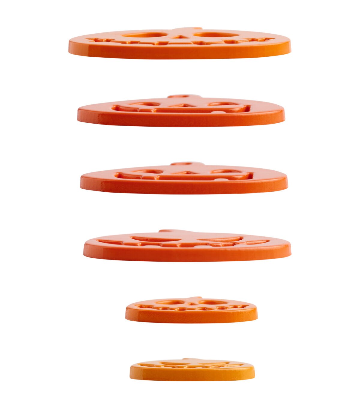 Pep up your handmade creations this Halloween with the Favorite Findings Pumpkin Buttons Value Pack - Orange. These buttons sport an orange hue and are shaped like pumpkins that wear the eerie grin of a Jack-o’-lantern. Add them to handmade dresses, sweaters tops and skirts. You can also be creative and use them to enhance DIY fabric pumpkins or design interesting button crafts for your home decor.