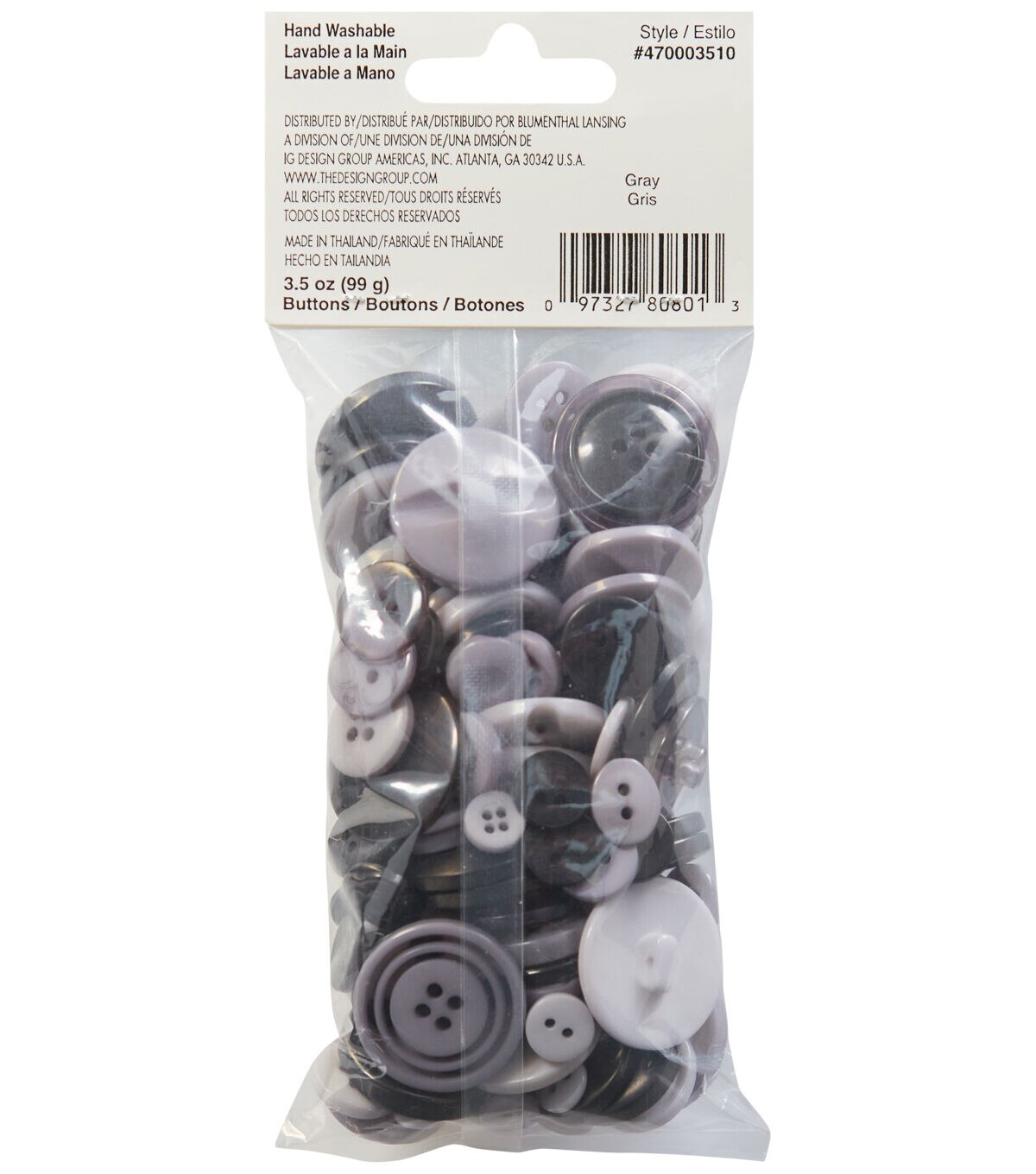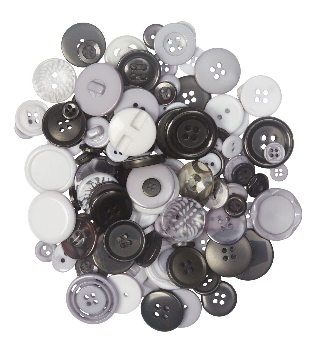 Button artists will love to have the Favorite Findings Gray and Black Buttons Clamshell in their craft supplies. This pack includes 3.5 ounces of craft buttons in an assortment of sizes and shades. These shank buttons come with four holes or two holes and sport colors that coordinate with flowers. Use them to create beautiful designs on pillow covers, tote bags, purses, jackets, skirts, wall hangings or create unique and stylish bracelets, neck pieces or earrings.