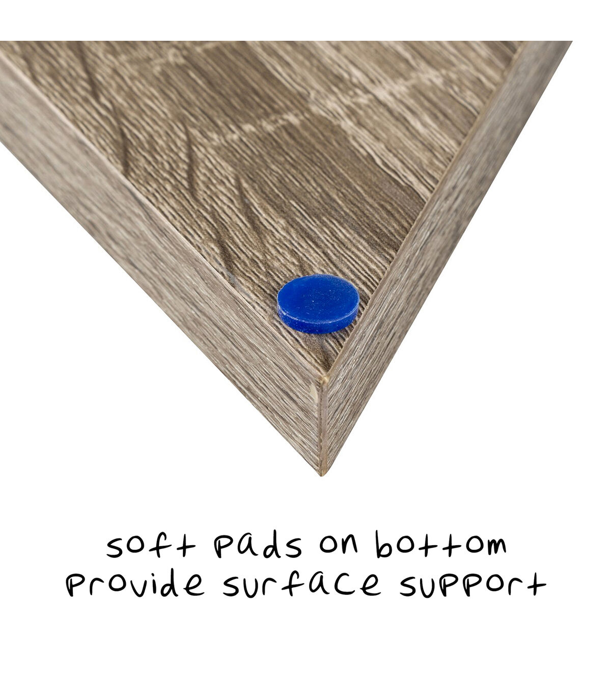 - Geo-shaped base with natural wood finish