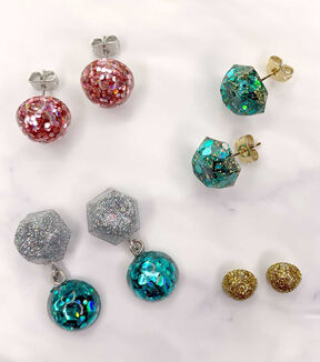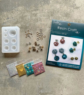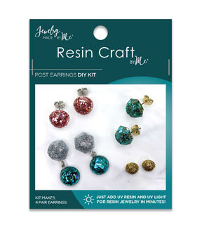 Simply pour, customize and cure! The Resin Craft by MePost Earrings UV Resin DIY Kit is the fast and easy start to making custom UV resin jewelry in minutes. Just add UV resin and UV light! Included: 1 silicone mold (it's reusable!) 8 post earrings 12 jump rings 8 crank bails 4 bags glitter Resin not included. Warning: Not intended for children age 12 and under.
