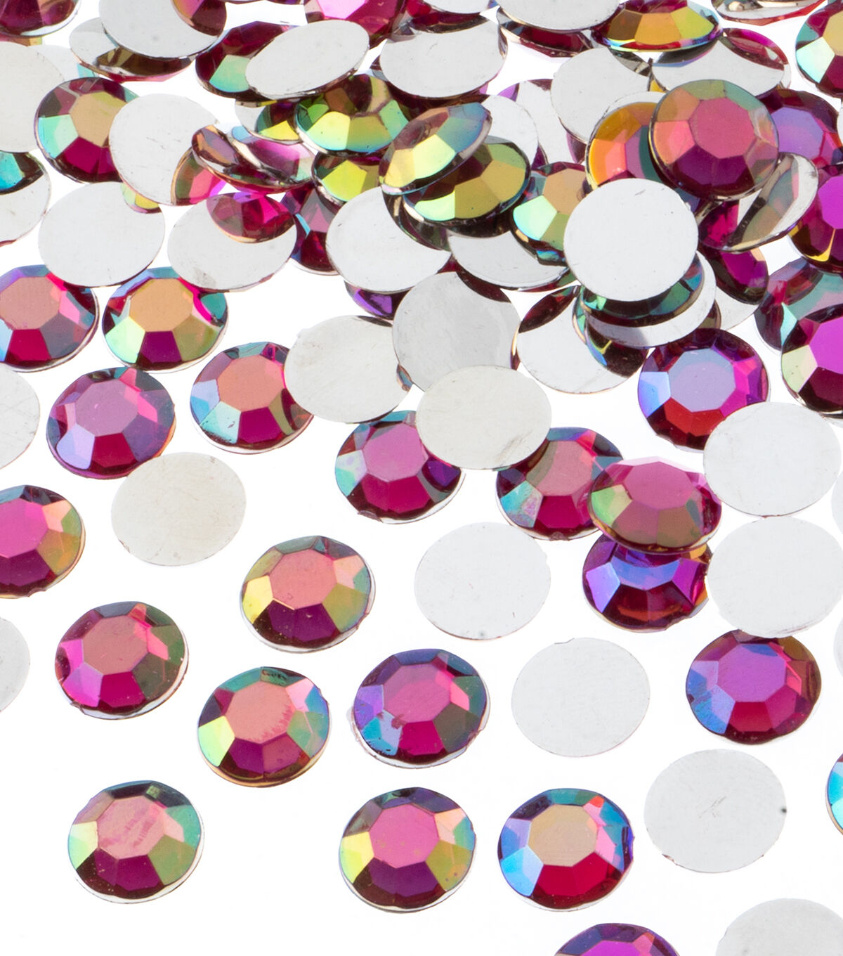 - 500 pieces of round acrylic rhinestones are enough for decorating your nail art, eye makeup, body art, phone, bags, greeting cards, clothes, high mesh stockings, shoes, wedding dress, books, guitar, tablets, car plates, table scatter or other items. Professional grade for jewelry making, fabric embellishments, and commercial displays. Add your own glue.