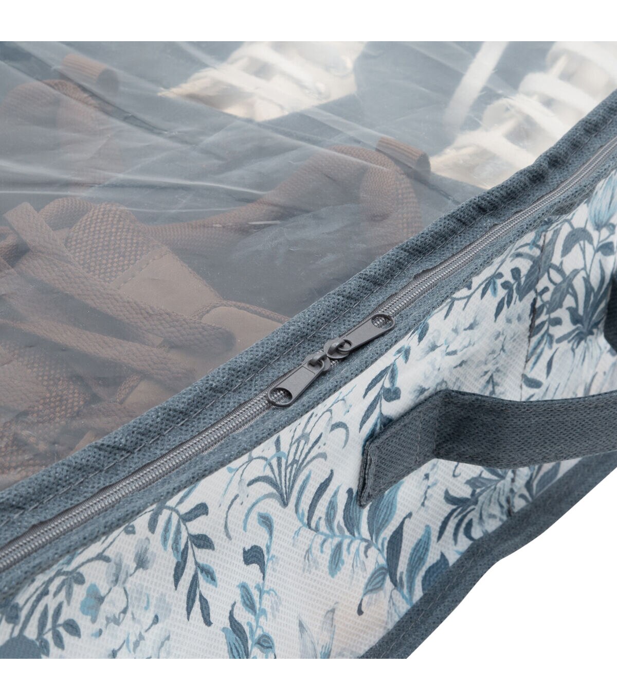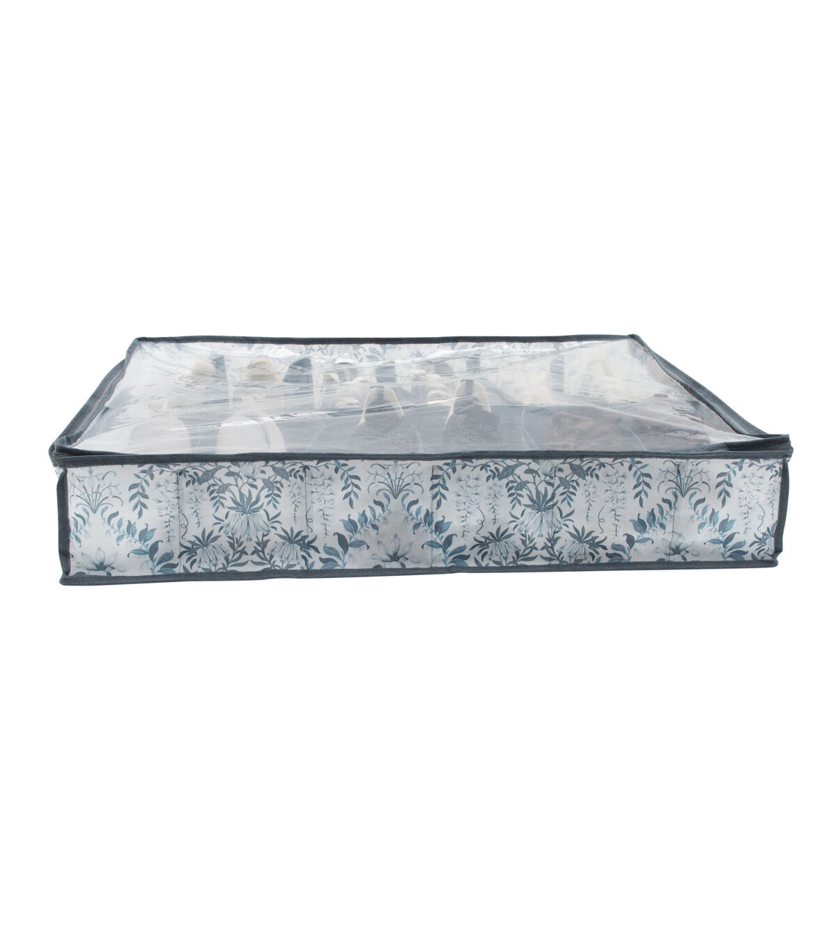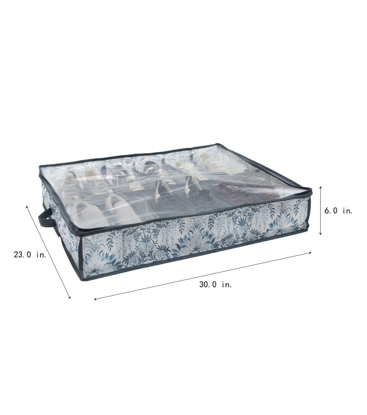 Laura Ashley's 12 Pair Under-the-Bed Shoe Storage Bag is made of breathable non-woven material that keeps your belongings safe. It is the perfect storage solution for belongings such as heels, sneakers, flats, or sandals. It protects them from dust and damage. It features helpful handle and a zippered PVC that is see through and allows for easy access. Easy 1-2-3 assembly; just unfold and set up. Cardboard dividers inside of the storage box makes it easy to compartmentalize your belongings while also helping to maintain the shape of the bag. Store this shoe bag under your bed to maximize storage in your room.