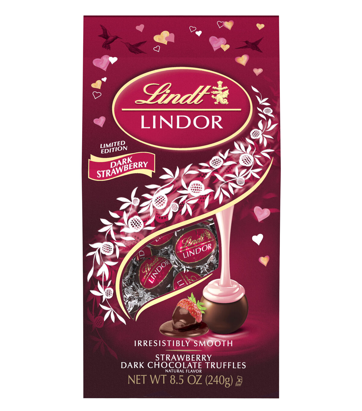 Lindor Strawberry Dark Chocolate Truffles Bag 8.5oz
