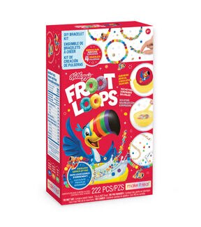 DIY bracelets with a cereal-sly fun twist! Using the included bowl and spoon, place each pouch in water and watch as it dissolves to reveal mystery bags – just like magic! Each kit contains everything needed to serve up 4 cereal-sly cute Kellogg’s Froot Loops-themed bracelets, including cord, charms, and colorful beads. Tweens will find Toucan Sam on the exclusive charms for their bracelets – the perfect accessory for everyday! An exciting activity for creative tweens from start to finish, presented in an uber cute cereal-themed package for extra fun – don’t forget to check the nutrition label! Who doesn’t love cereal?Contains2 dissolvable pouches, 3 mystery bags, 1 bowl, 1 spoon, 1 clear elastic cord 1.5 m (1.6 yd), 1 curb chain, 2 charms, 210 assorted beads, 1 instruction sheet.