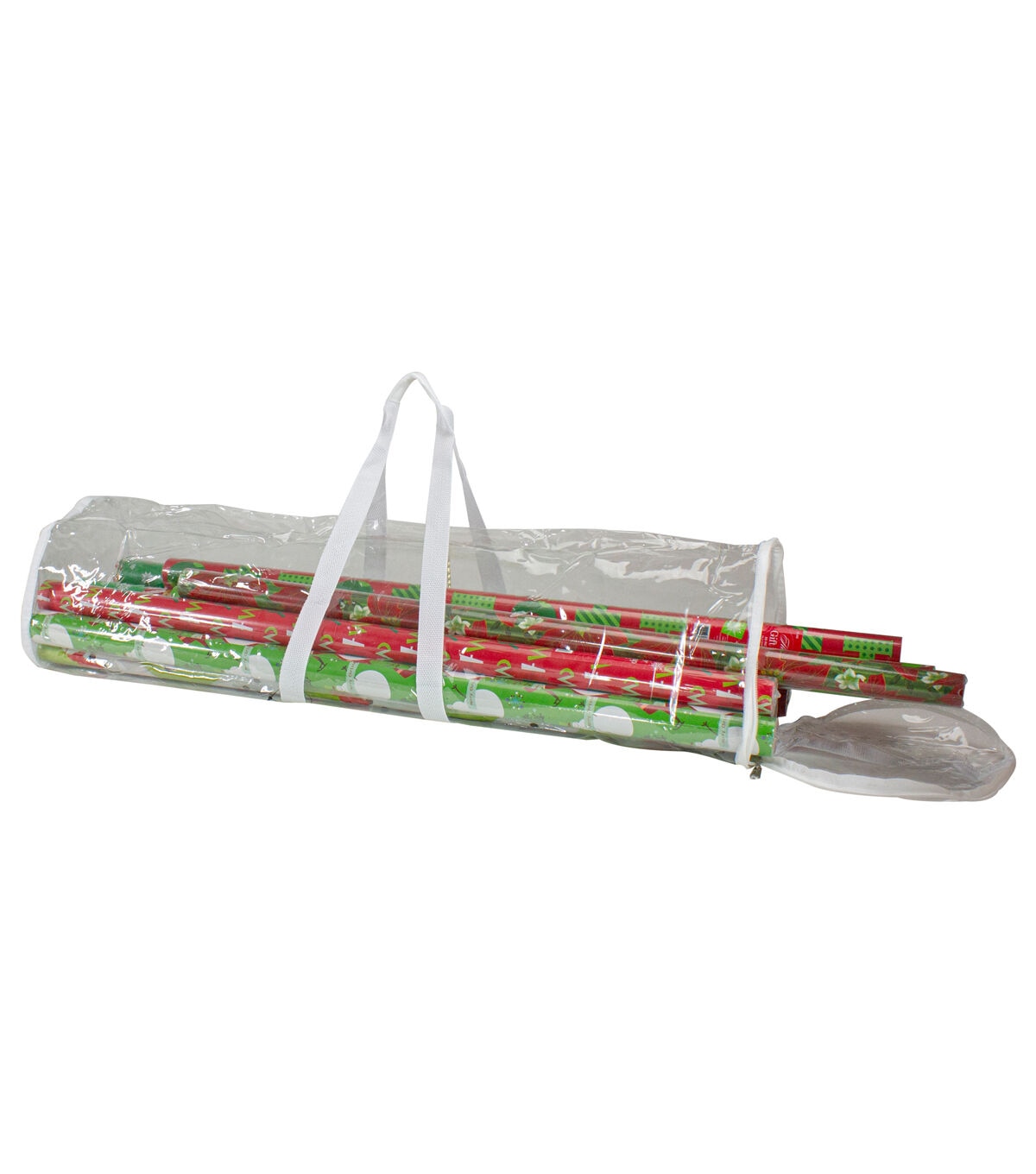 Make organizing your gift wrap rolls a breeze with this handy gift wrap organizer bag. It features a clear plastic body to help identify the rolls and handles on the sides and top for ease of storage and transportation. Use this to store all of your gits wrap throughout the year and help keep it organized in one place.