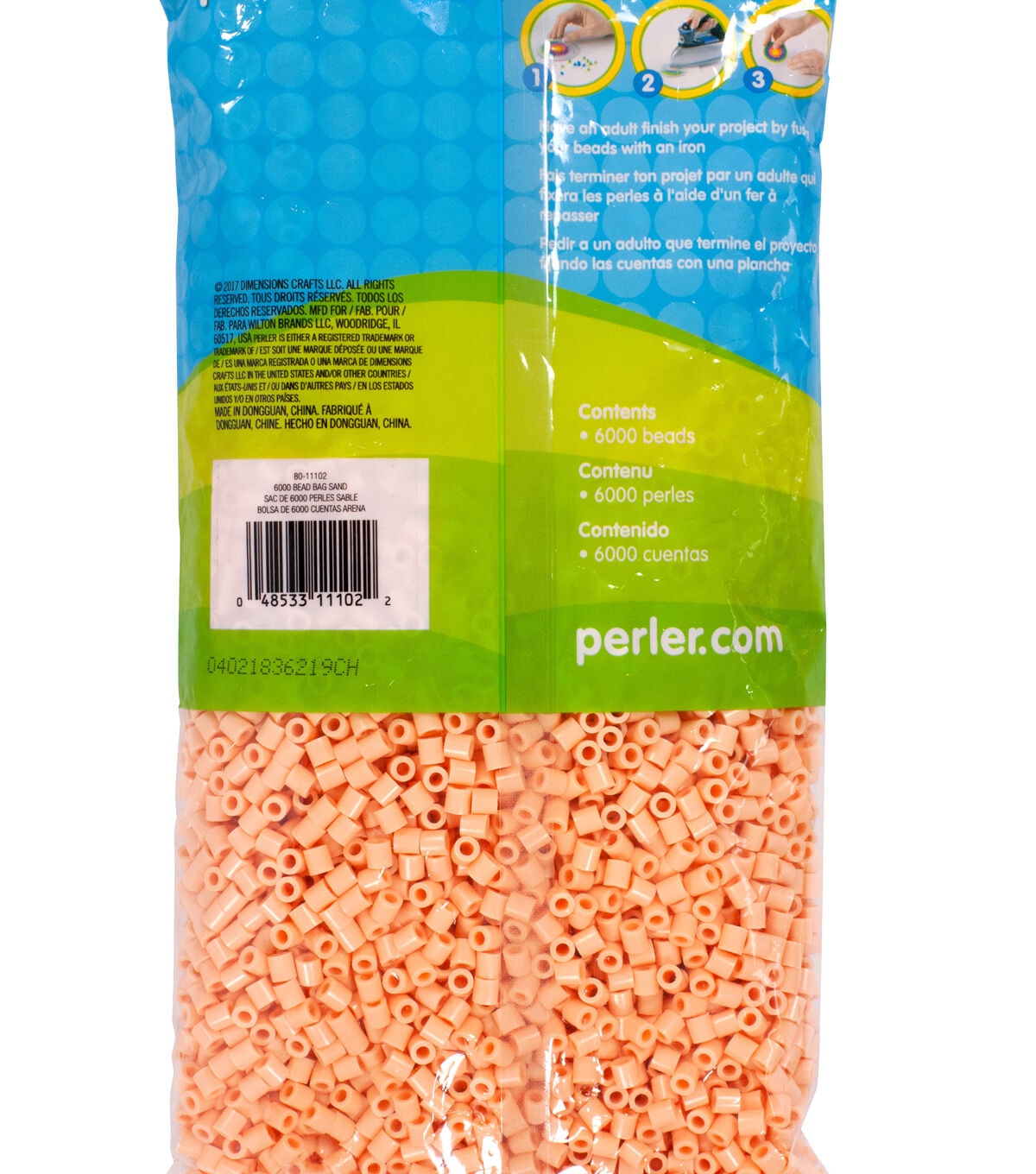 Keep the creative fun going with this bead bag. This package includes 6000 sand beads. Designed to be used with Perler pegboards and ironing paper, these easy-to-use beads can be fused together with a household iron or strung together to create lots of cool designs. For ages 6 and up. Pegboards and ironing paper not included