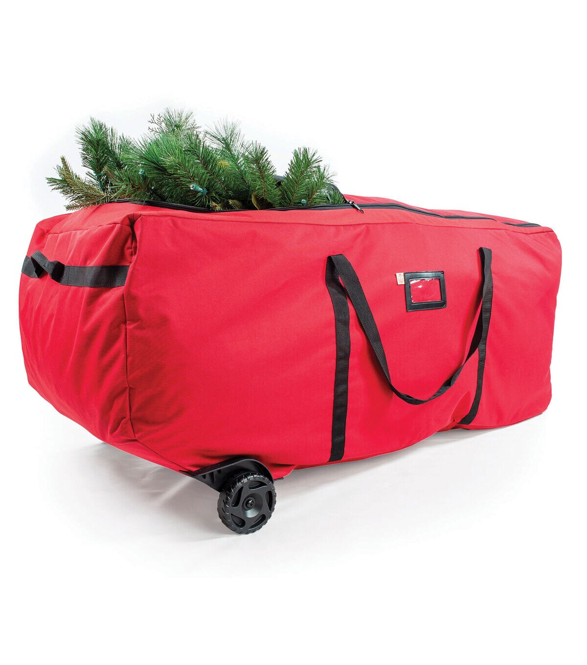 After buying an artificial tree and unboxing it, you would think you could reuse its box for storing the tree at the end of the season. However, you soon experience the less than ideal results of attempting to fit the now fluffed tree back into the flimsy cardboard box. You probably have many a memory of a bulging box covered in tape leaving a trail of artificial pine needles leading to the basement. Make tree storage clean and simple with the EZ Roller Tree Storage Bag. This bag fits most trees 6-9 ft. tall keeping the tree protected through the seasons. No tape is needed to fit the trees inside of the bag as there are built-in compression straps to tighten around the tree making it a better fit. Fitting the tree pieces into the bag is made even easier with the large U-shaped zipper opening. To ensure the durability of the bag while transporting the tree, the handles are reinforced and padded. Full Christmas tree Boxes often need two or three people to carry safely. You’ll be able to move the bag into storage by yourself, thanks to the oversized wheels that keep the bag elevated and easy to roll. The angle on the bag near the wheels further prevents dragging and wearing while the bag is tilted up for rolling. Save your tape and forget saving the flimsy cardboard box this year for your tree.