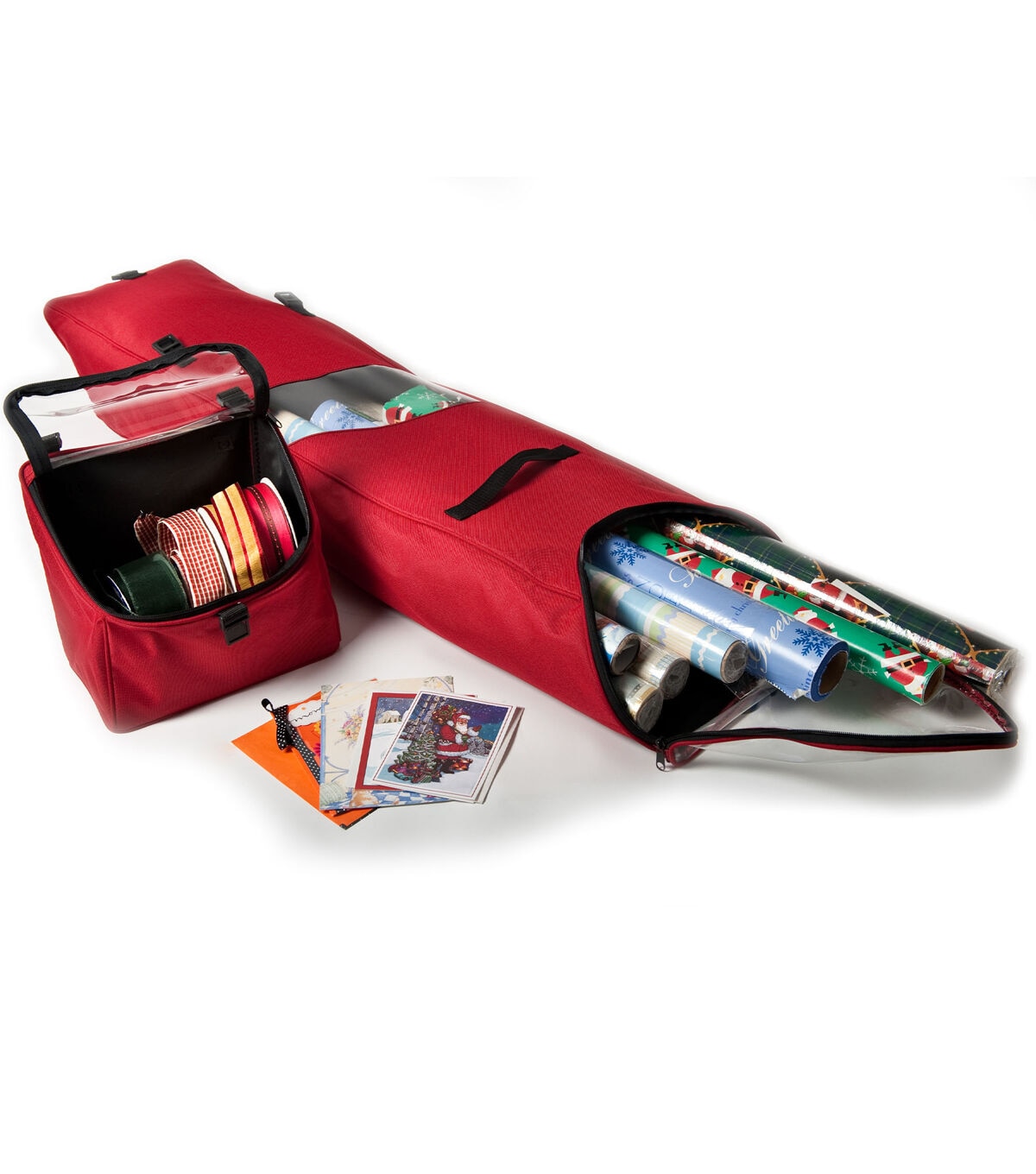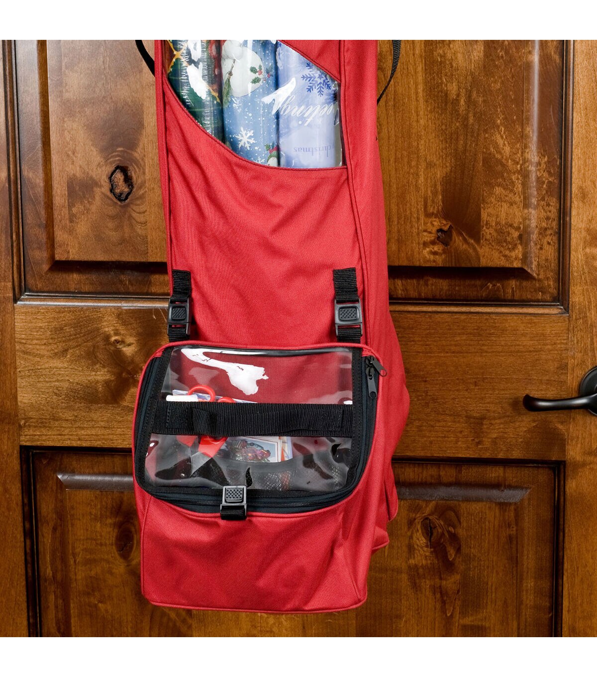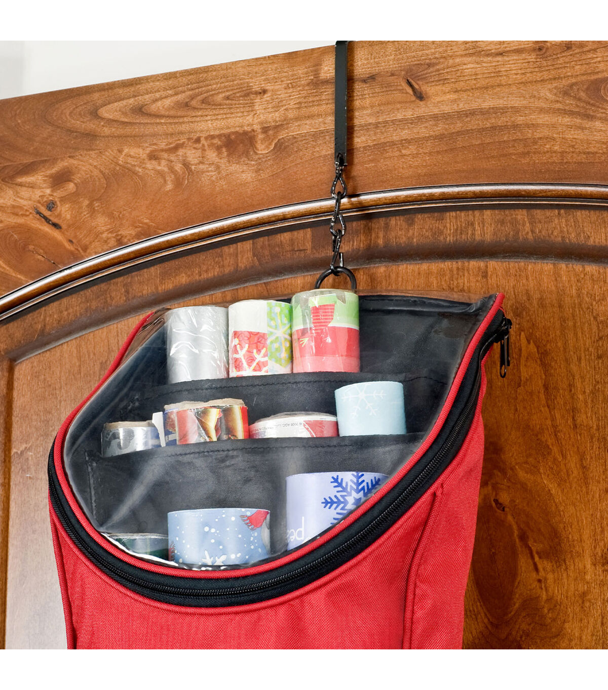 After Christmas time there is often an internal debate on what to do with all your remaining wrapping paper. As the tall rolls do not fit in most drawers or storage containers it’s complicated keeping the rolls together, safe from damage, and in a space-efficient location. By next Christmas time your wrapping paper will be lost, damaged, or forgotten leading you to buy new paper again. This Hanging Wrapping Paper Storage Bag eliminates the hassle of storing your wrapping paper and the need to buy new paper every year. This durable bag can fit approximately twelve 40 in. wrapping rolls and is easily carried with the reinforced carrying handles. The bag can be discreetly hung out of the way on the back of a door. The clear windows will give you a quick view of what remaining Christmas or Birthday wrapping paper you have left. What’s present wrapping without some bows and ribbons? The storage bag comes with an easily removed and attached toolbox for tape, scissors, ribbons and other items. Save yourself the trouble of finding a discrete storage place to keep your wrapping paper rolls from damage. This bag will keep them safe and clean all year round saving you from the extra trip to buy new wrapping paper every year.