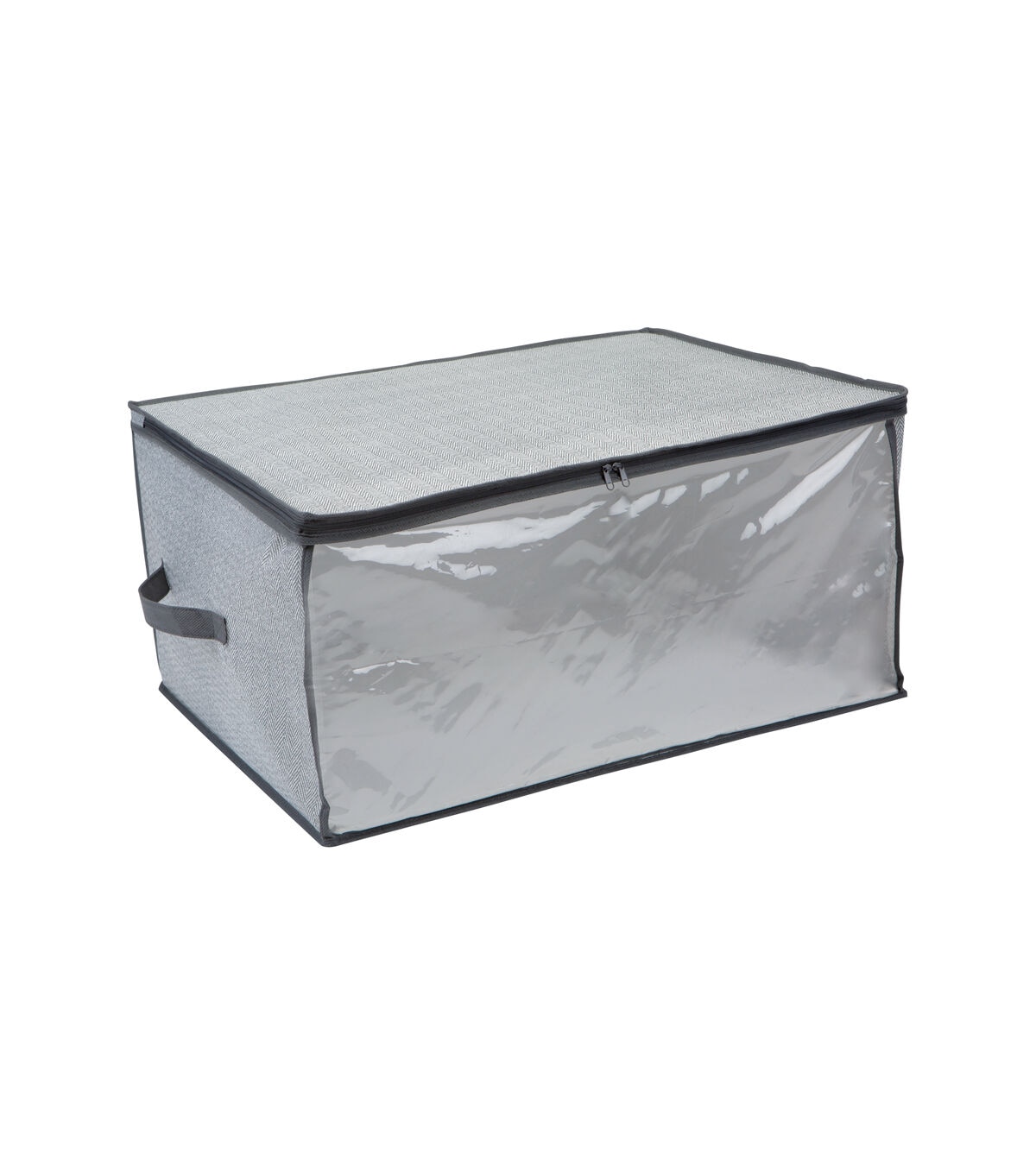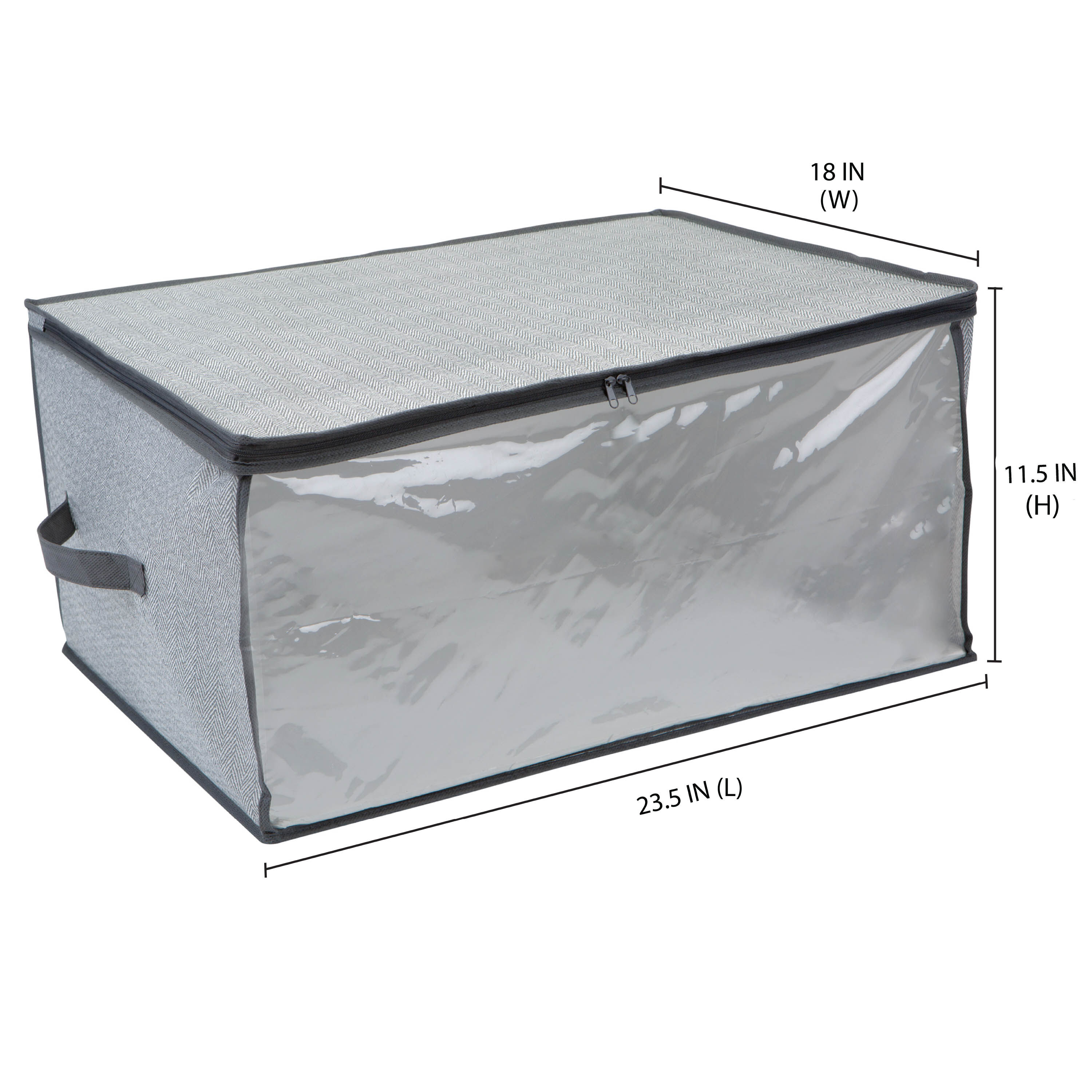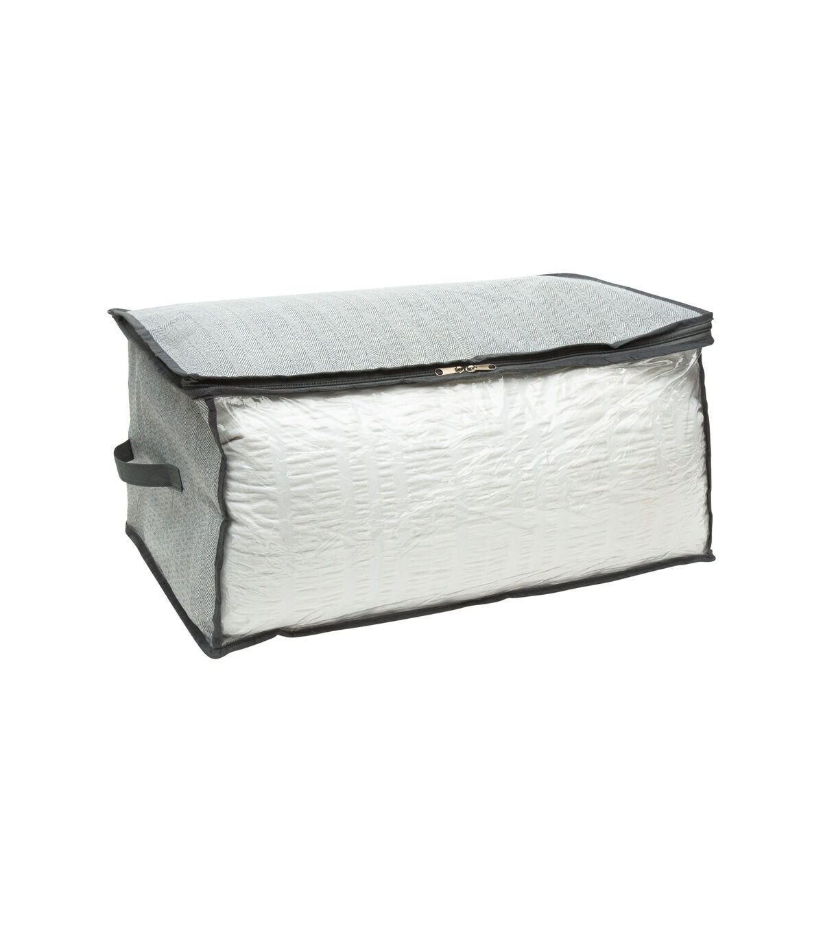 Simplify's Non-woven Blanket Bag is made of 100% PP Nonwoven breathable Material that keeps your blankets and other belongings safe. Perfect storage solution for off-season items such as blankets, garments and more while also protecting them against dust and damage thanks to it's full zippered top. Durable handles allows for easy carrying and see through window on front allows you to look inside of the bag. Bag helps eliminate odors to help linens stay fresh and clean. Flexible and adjustable designs makes it easy to fit in tight spaces to store.