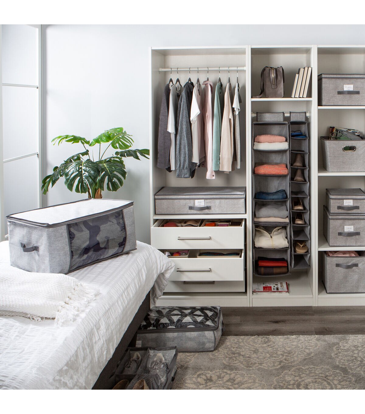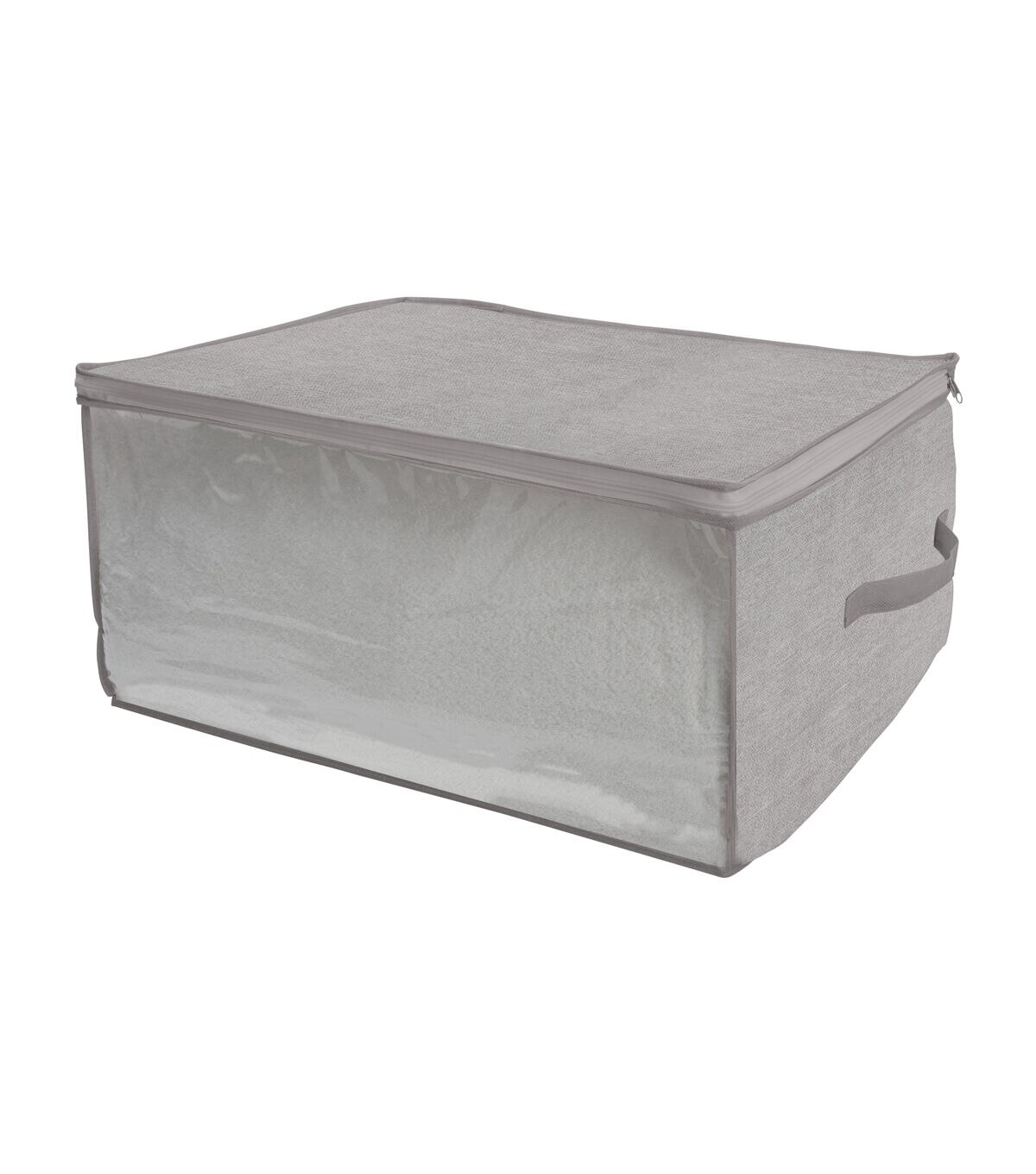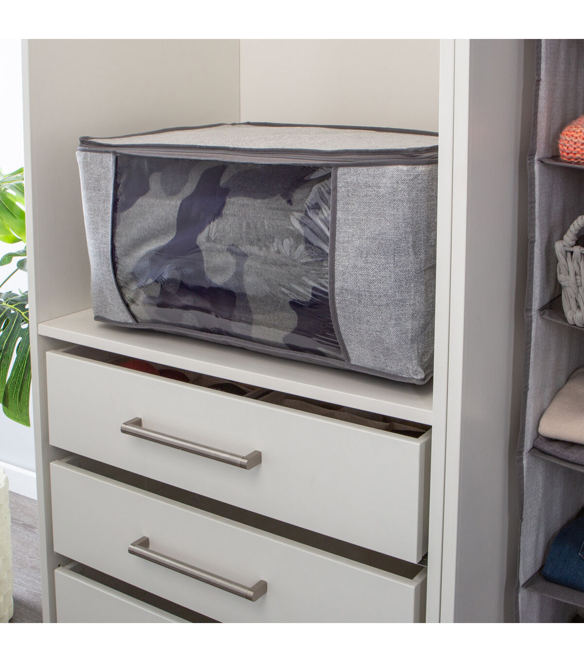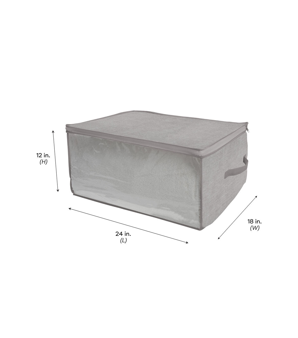Simplify's Non-woven Blanket Bag is made of 100% PP Nonwoven breathable Material that keeps your blankets and other belongings safe. Perfect storage solution for off-season items such as blankets, garments and more while also protecting them against dust and damage thanks to it's full zippered top. Durable handles allows for easy carrying and see through window on front allows you to look inside of the bag. Bag helps eliminate odors to help linens stay fresh and clean. Flexible and adjustable designs makes it easy to fit in tight spaces to store.