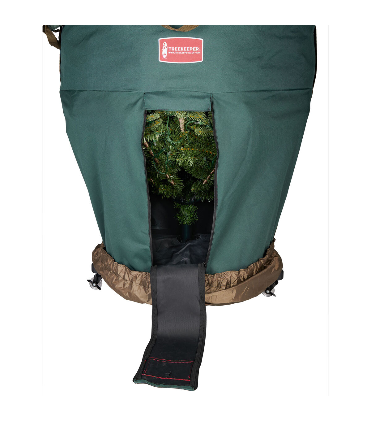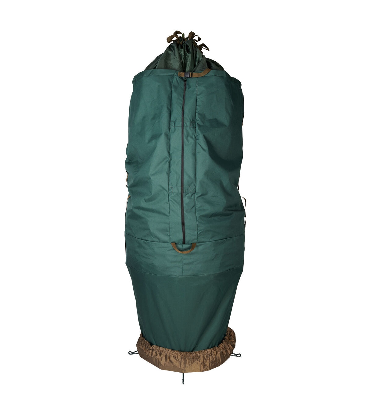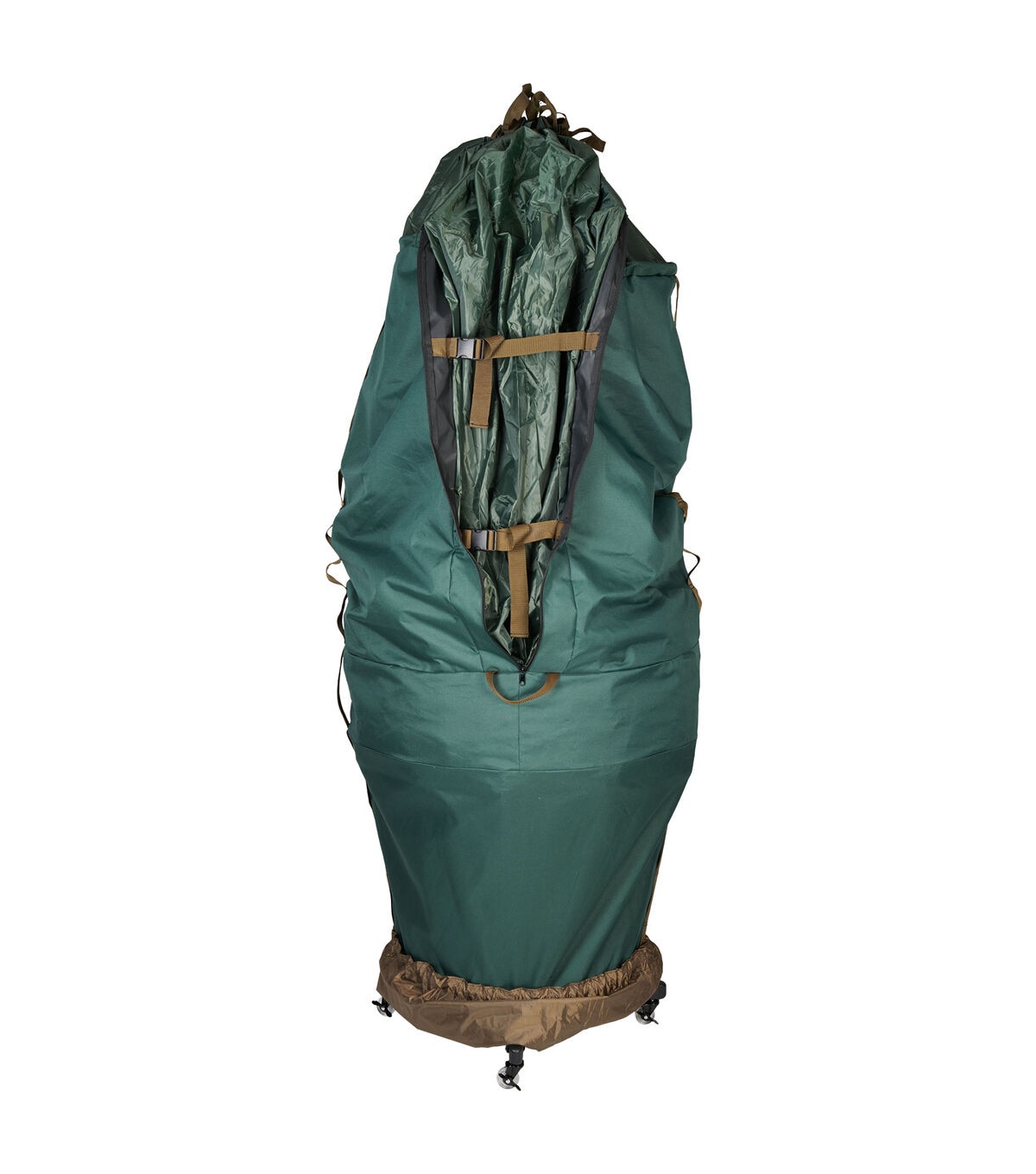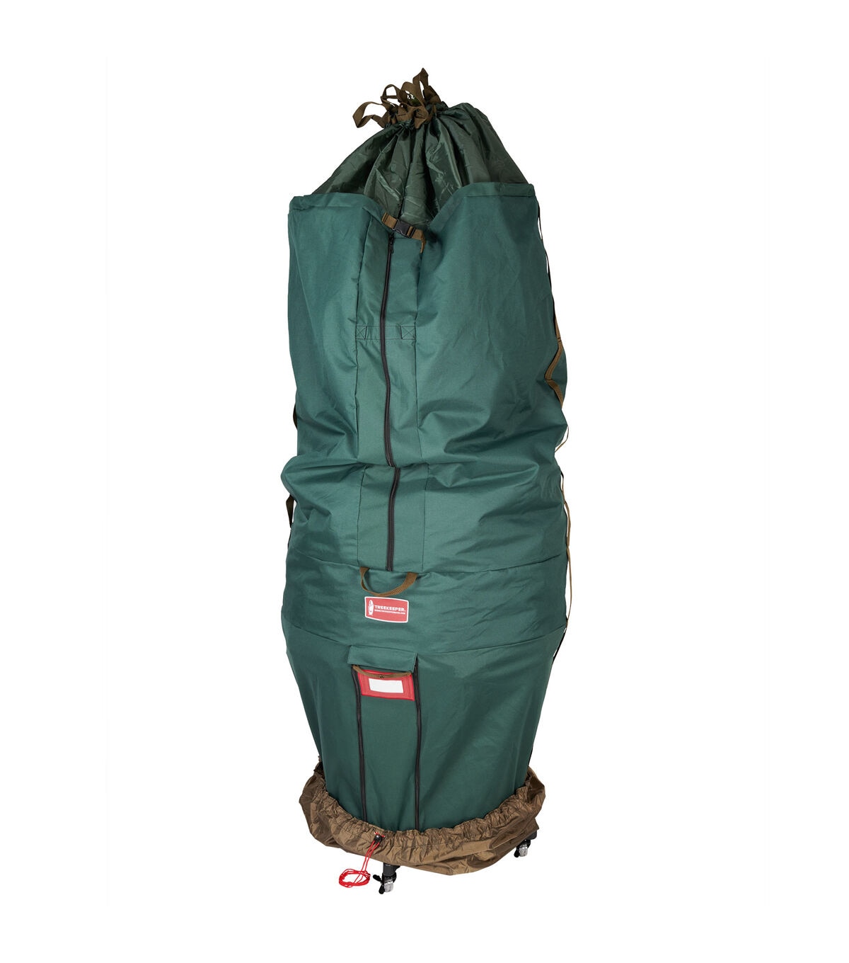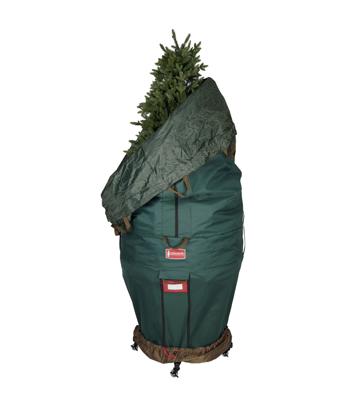 We understand your frustration with your artificial Christmas tree. Each year, set up and take down of your tree tests your patience as you assemble each section and try to find the plugs to make all the lights work. You force a large tree into a cardboard box that is too small to fit your Christmas tree, and break your back carrying the box in and out of storage. This repeated assembly and disassembly, along with that taped together cardboard box, shortens the lifespan of your Christmas tree. The good news is that it doesn't have to be this difficult or time consuming. The large girth upright tree storage bag is perfect for artificial Christmas trees up to 9ft. tall, and are more full or wider than others. Storing your tree upright allows you to keep your tree assembled, already cutting your setup and take down time in half. Pair that with the space-savings you'll have from storing your tree vertically, with the ability to use a rolling tree stand so you can wheel your bagged tree into storage, and suddenly the task you once hated becomes a whole lot easier. Next year, when set up your tree, simply bunch the bag up at the base of your tree, securing it in The attached tree skirt, and your storage bag will be discreetly hidden from sight as if it weren't even on the tree to begin with.