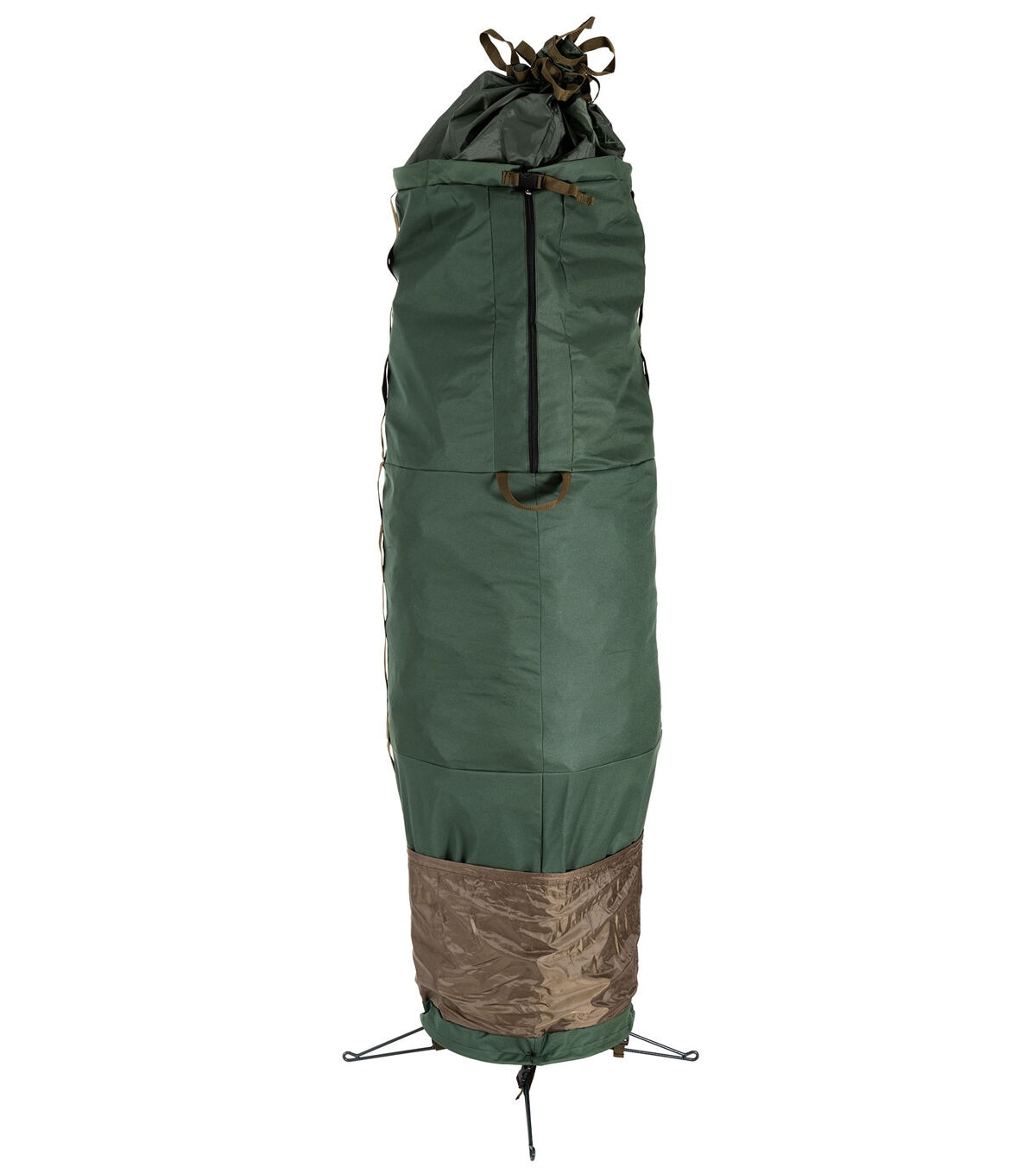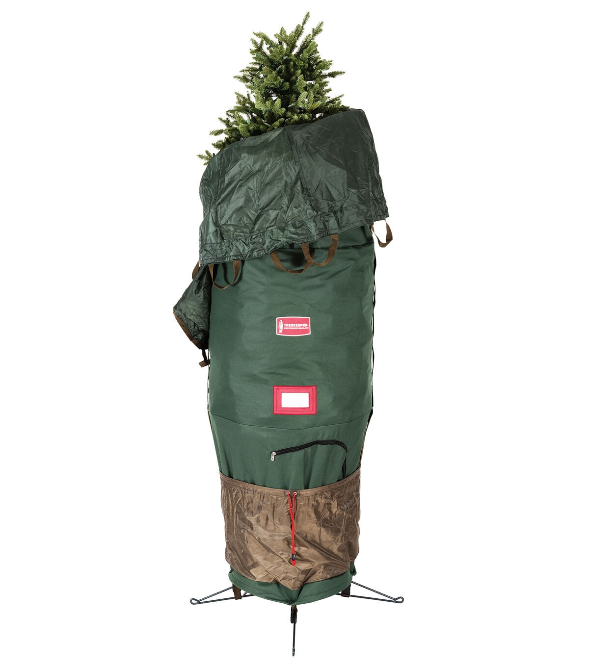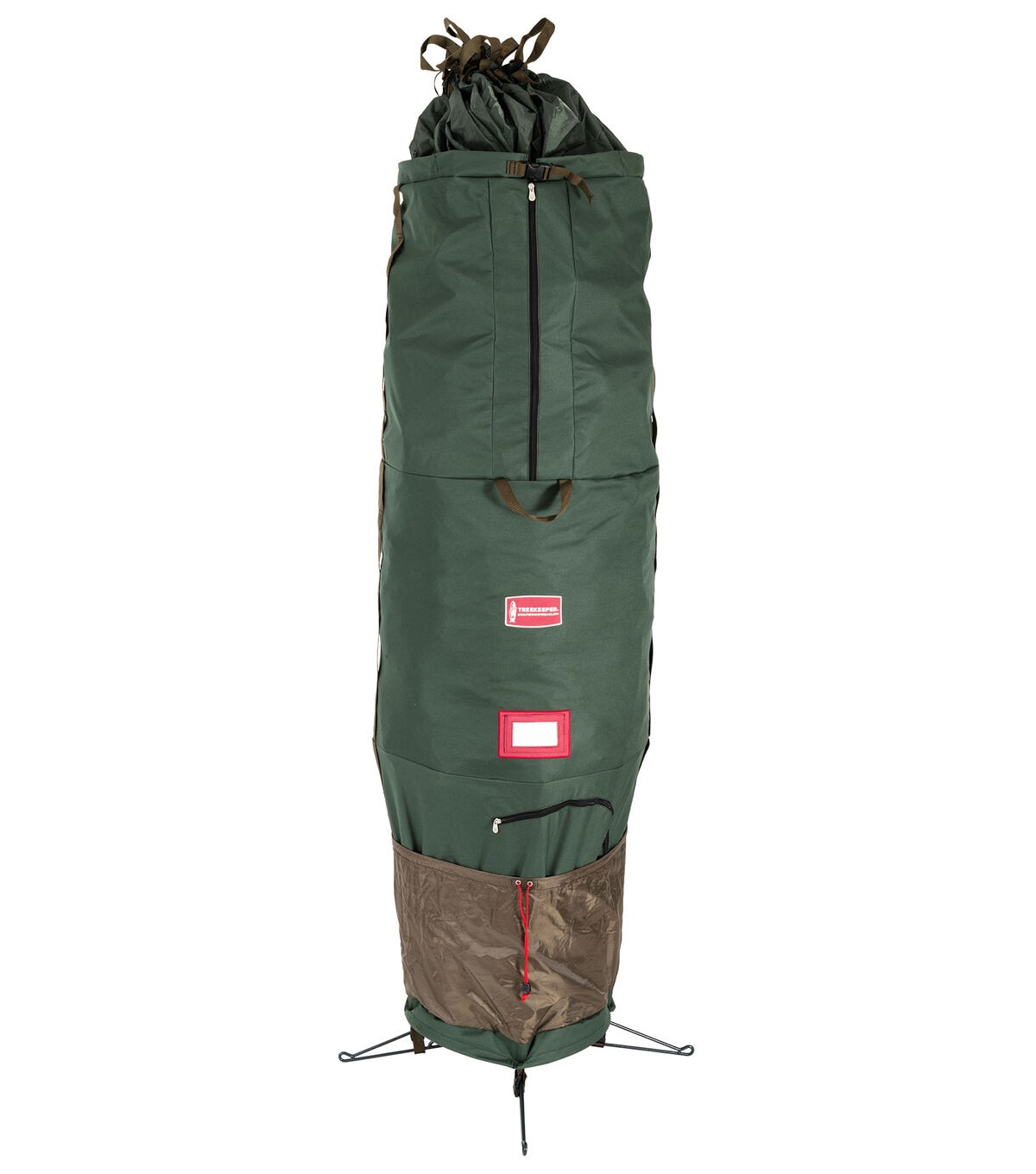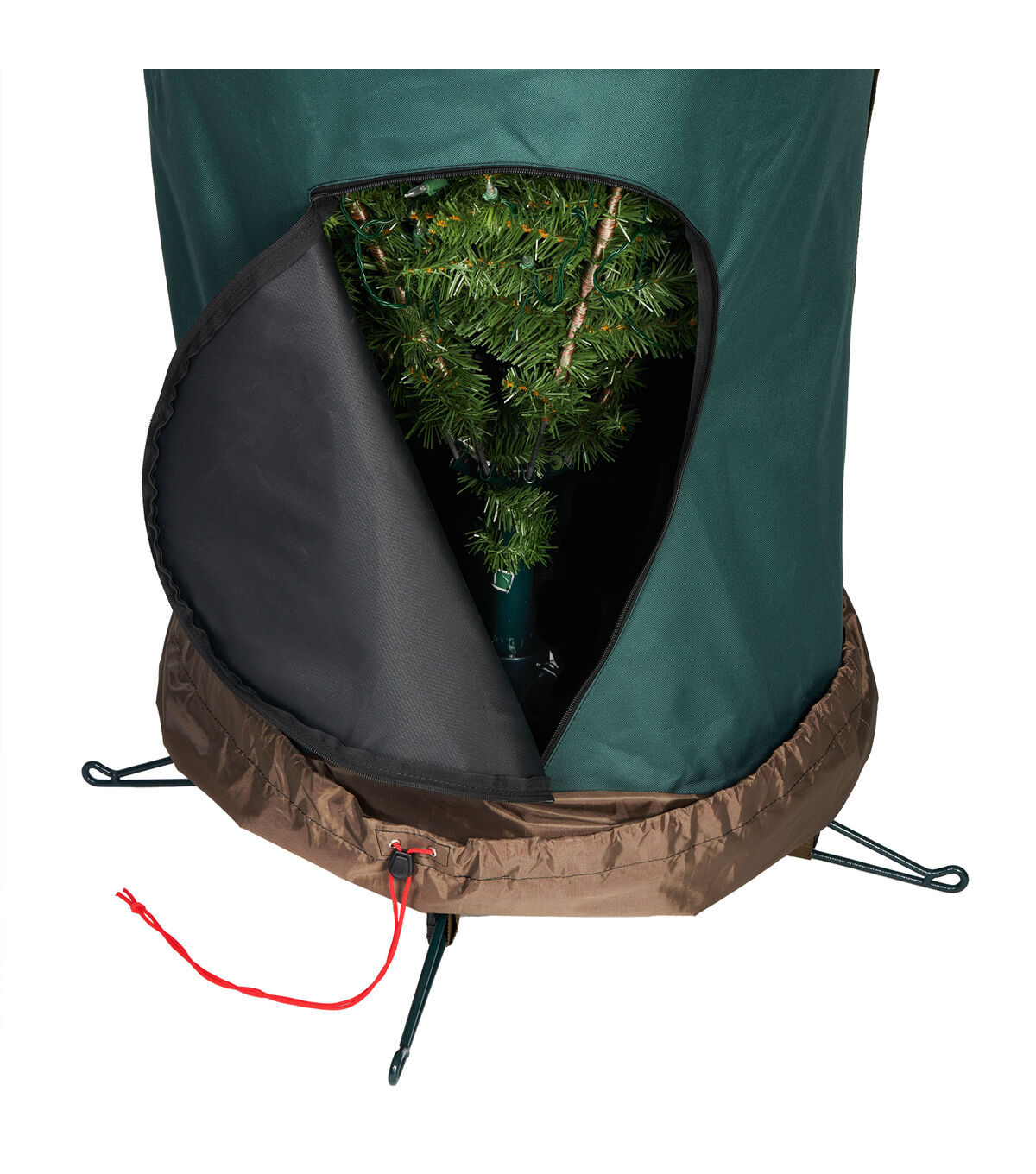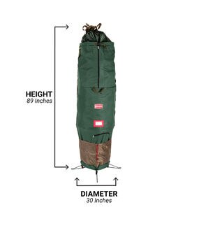 We understand your frustration with your artificial Christmas tree. Each year, set up and take down of your tree tests your patience as you assemble each section and try to find the plugs to make all the lights work. You force a large tree into a cardboard box that is too small to fit your Christmas tree, and break your back carrying the box in and out of storage. This repeated assembly and disassembly, along with that taped together cardboard box, shortens the lifespan of your Christmas tree. The good news is that it doesn't have to be this difficult or time consuming. The upright tree storage bag is perfect for artificial Christmas trees that are 7.5 ft. tall or less. Storing your tree upright allows you to keep your tree assembled, already cutting your setup and take down time in half. Pair that with the space-savings you'll have from storing your tree vertically, with the ability to use a rolling tree stand so you can wheel your bagged tree into storage, and suddenly the task you once hated becomes a whole lot easier. Next year, when set up your tree, simply bunch the bag up at the base of your tree, securing it in The attached tree skirt, and your storage bag will be discreetly hidden from sight as if it weren't even on the tree to begin with.