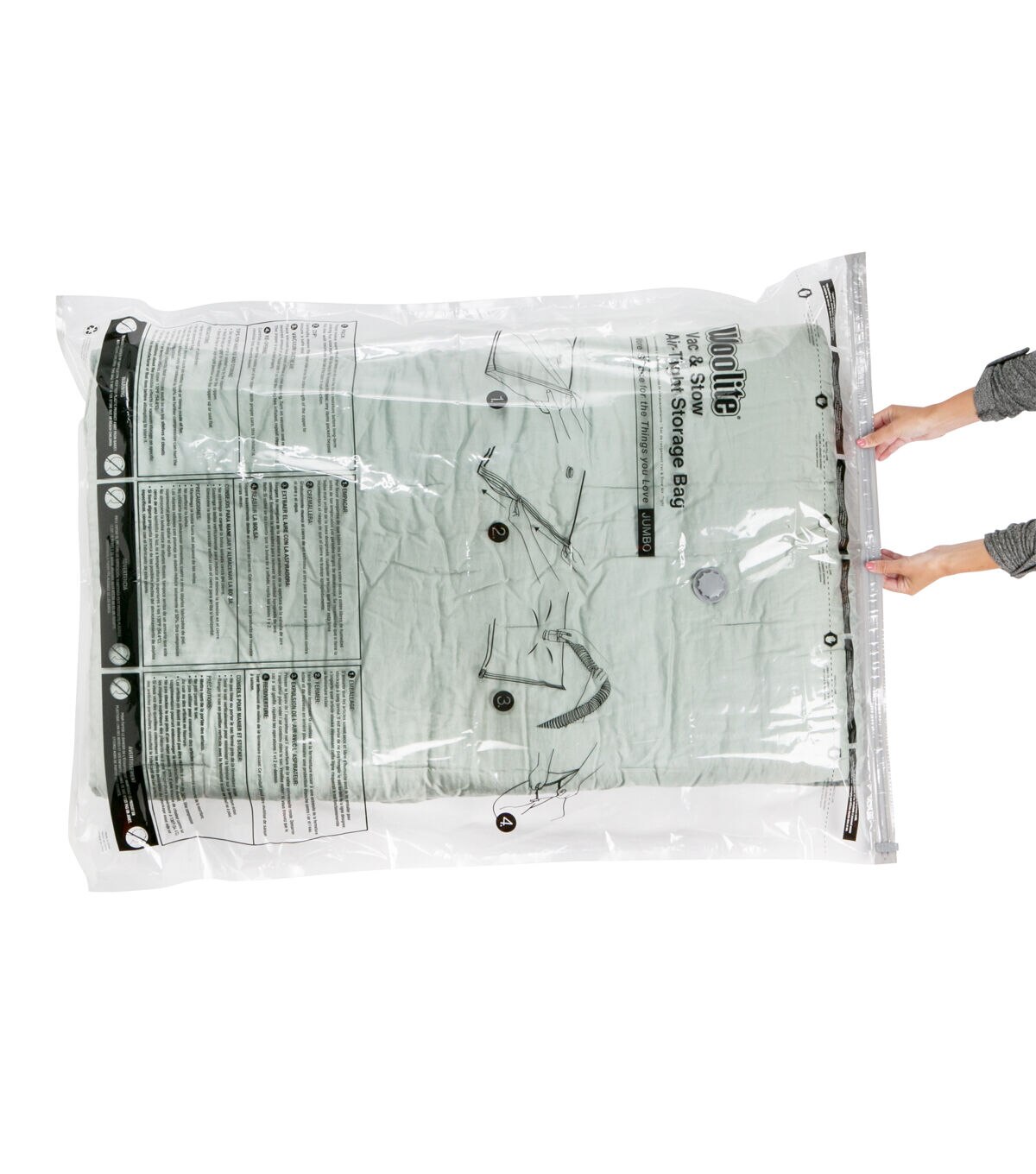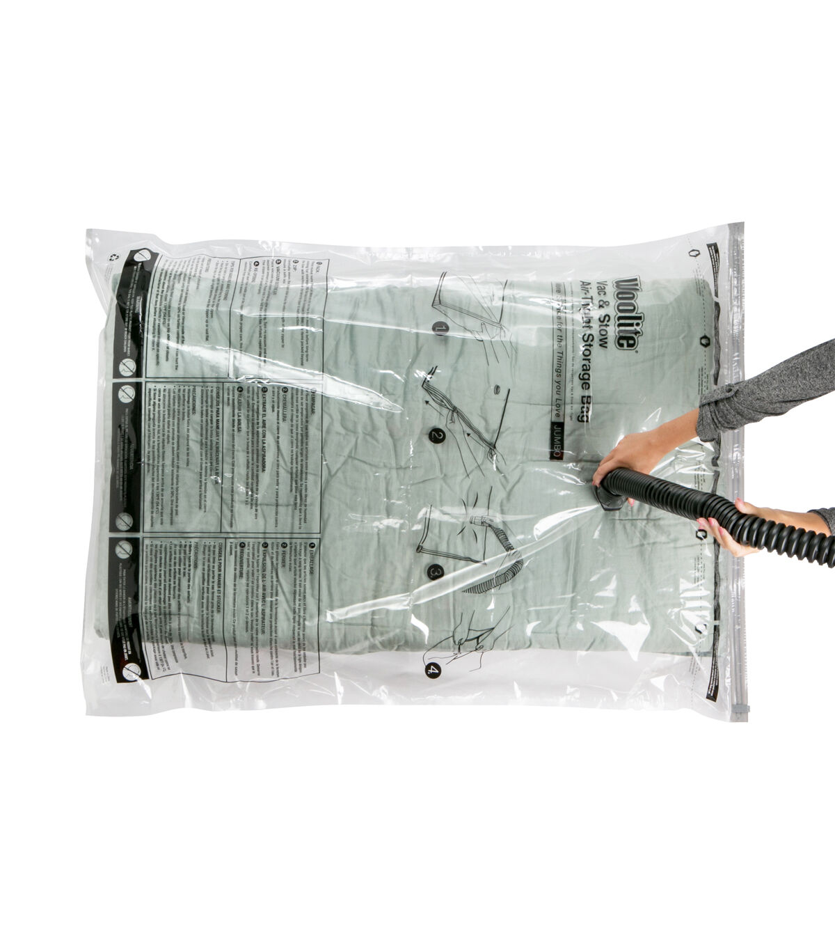 Woolite's Air-Tight Jumbo Vacuum Storage Bag is perfect for storing all of your personal items to pack into your closets, backpacks, suitcases and more while protecting against water damage, dirt, mildew, and odors. With airtight valves, zippers and sliders, the bag eliminates space robbing air pockets to utilize all of the space provided for the things you love. PROTECT your clothes against water damage, dirt and dust, odors, mildew and insects. The compression bags are airtight and watertight. ORGANIZE your clothes, for example by family member, outfit, activity, and more HIGH QUALITY & REUSABLE - double zippers and sealing clips ensure a secure seal for optimal compression every time. Space robbing air pockets are removed to optimize space. Durable Material will last indefinite uses without hindering vacuum capacity. CAUTION - Keep away from flames, use caution (don't over pack/use to much force), dry all items before storing, not for leather/fur