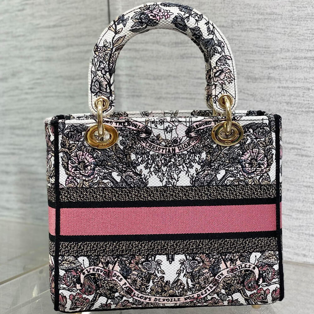 White and Pastel Pink Butterfly Around The World Embroidery