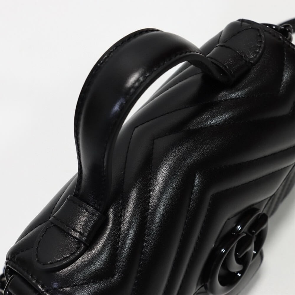 Black matelassé chevron leather