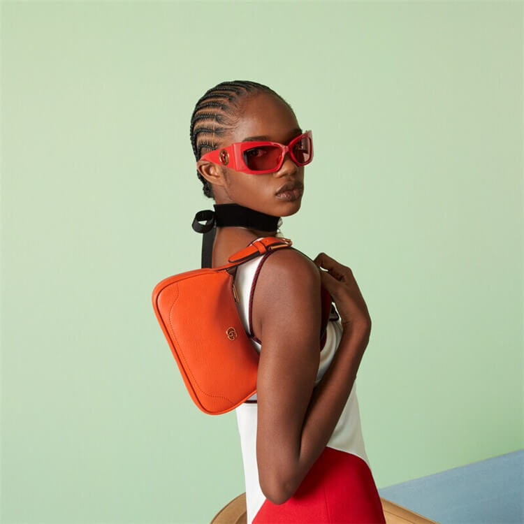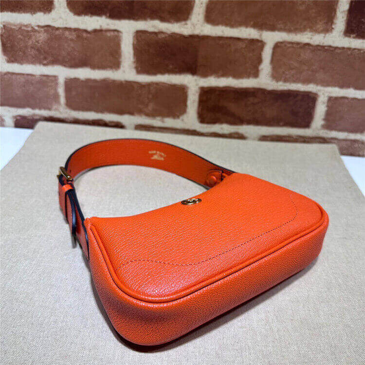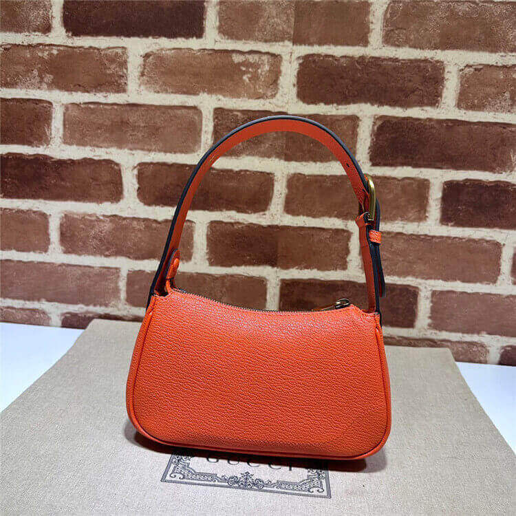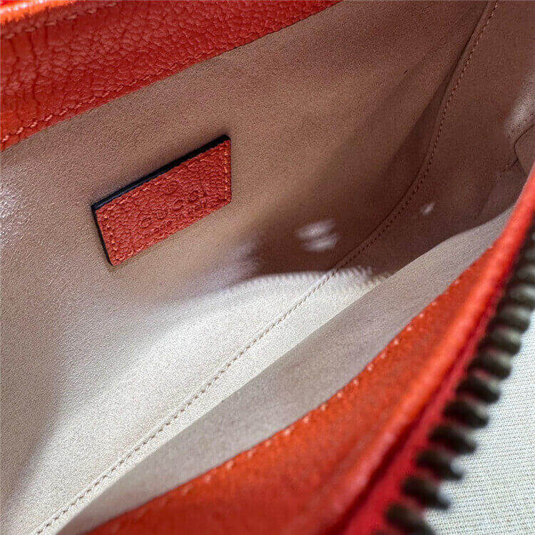 1:1 Mirror Quality Replica Gucci Aphrodite Mini Shoulder Bag Style:739076 AAA9F 7519 Orange soft leather Orange leather trim Gold-toned hardware Microfiber lining with a suede-like finish Double G Adjustable leather shoulder strap with 5.9″ drop Zip closure Mini size: 8.2″W x 4.7″H x 1.5″D