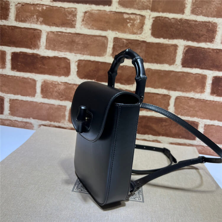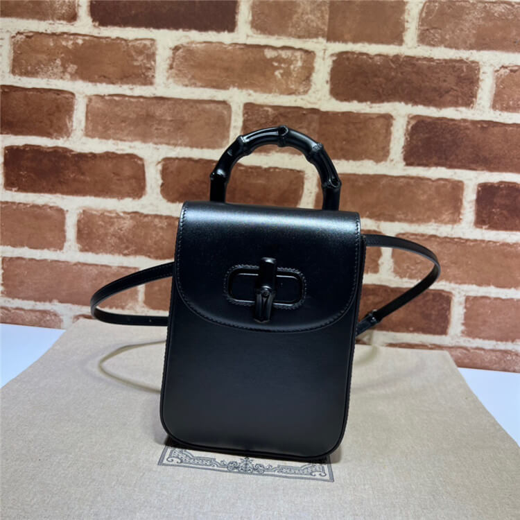 1:1 Mirror QualityReplica Gucci Bamboo Mini HandbagStyle:702106 UZY0P 1000Black leatherBlack-toned and bamboo hardwareBlack Bamboo handleDetachable and adjustable shoulder strap with 12.5″ drop5.5″W x 6.2″H x 1.5″D