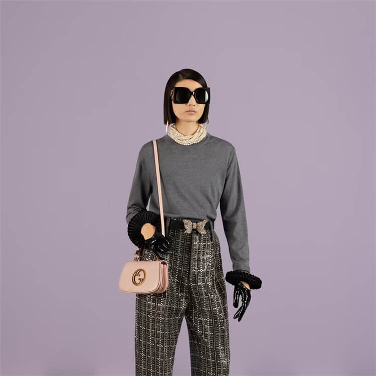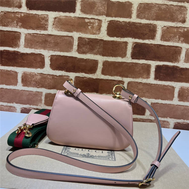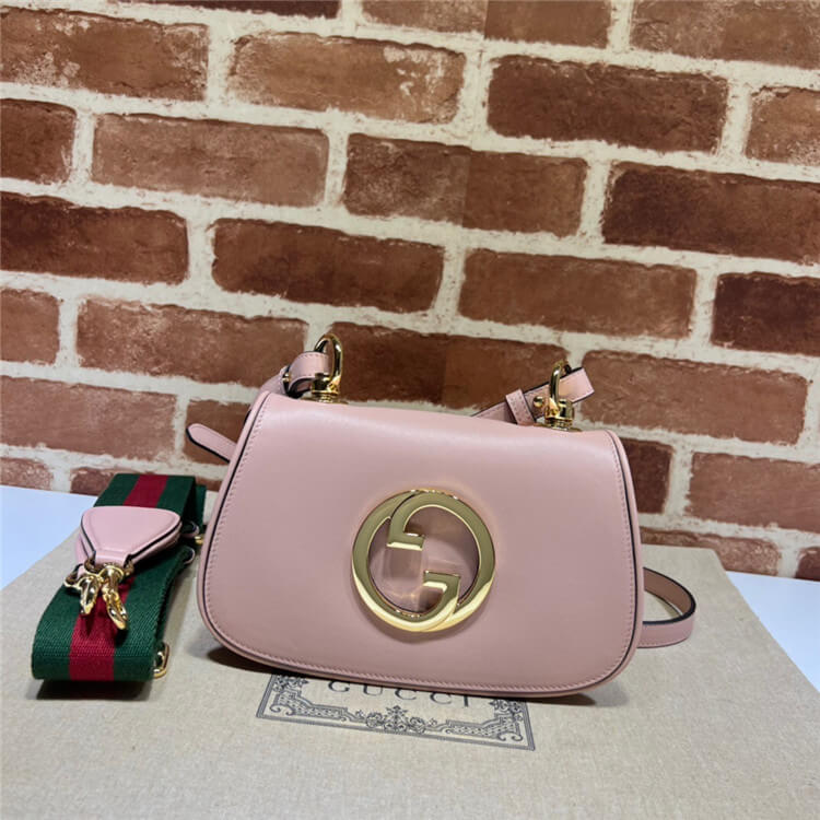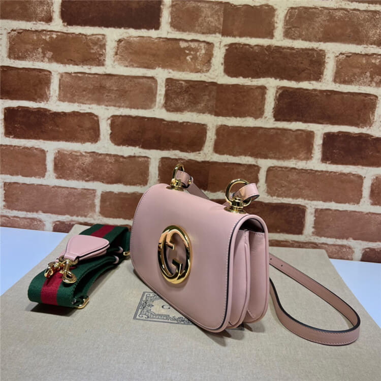 1:1 Mirror Quality Replica Gucci Blondie Mini Bag Style:698643 UXXAG 6944 Light pink leather Gold-toned hardware Green and red Web strap Round Interlocking G Double shoulder strap; leather with 54.5cm drop and canvas with 57cm drop Magnetic closure Mini size: W22cm x H13cm x D5.5cm