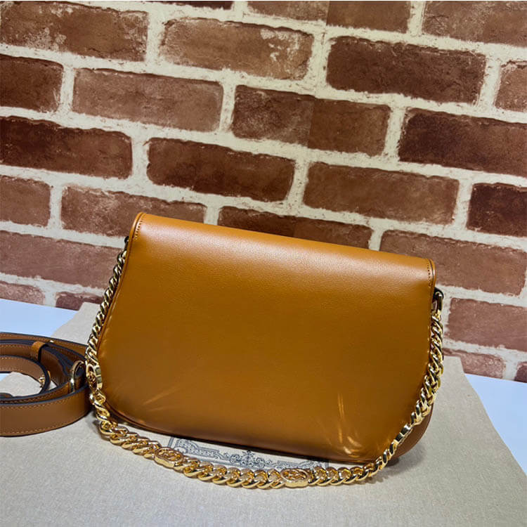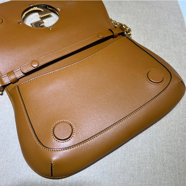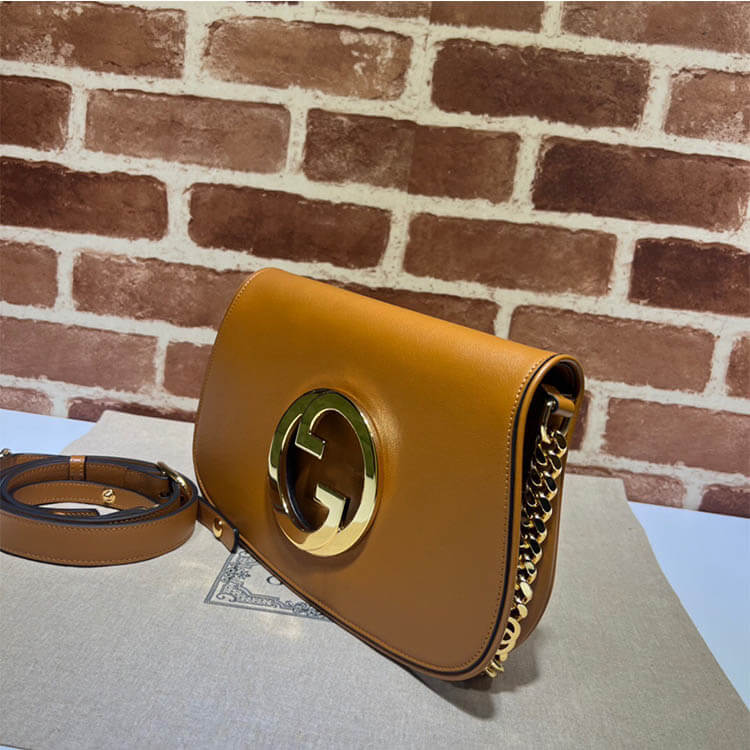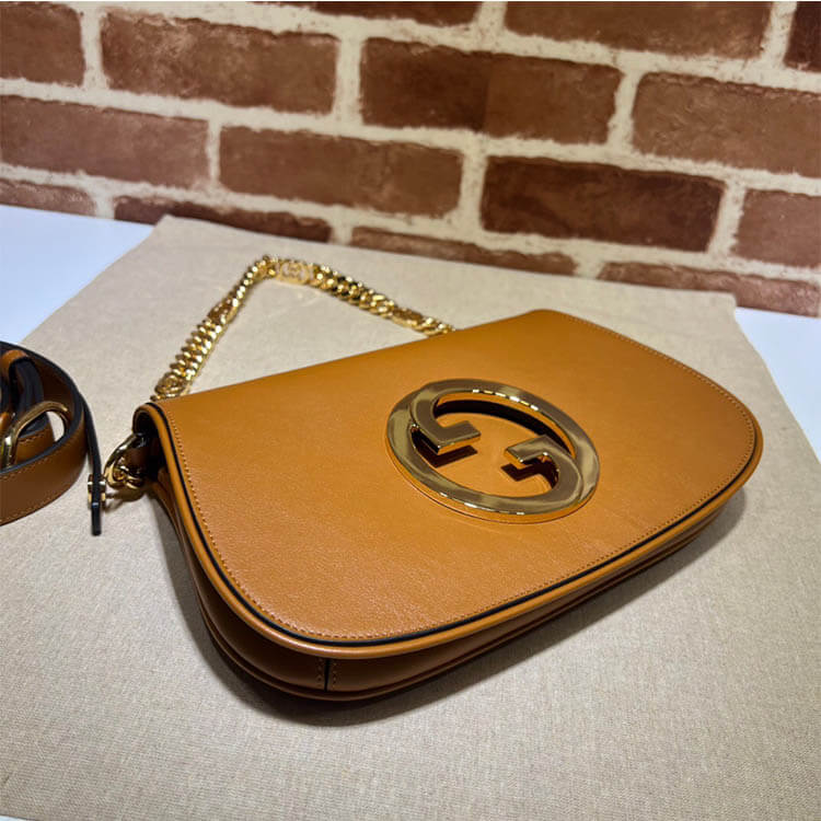 1:1 Mirror Quality Replica Gucci Blondie Shoulder Bag Style:699268 UXX0G 8351 Light brown leather Gold-toned hardware Leather lining Round Interlocking G Interlocking G chain Inside: zip pocket 7.9″ chain strap and 15.8″ detachable leather strap Magnetic closure Small: 11″W x 6.3″H x 1.6″D