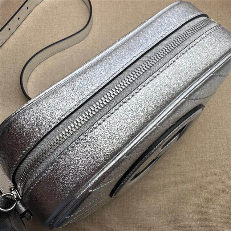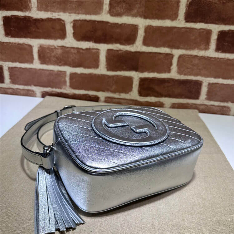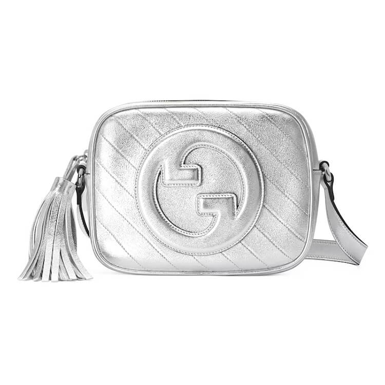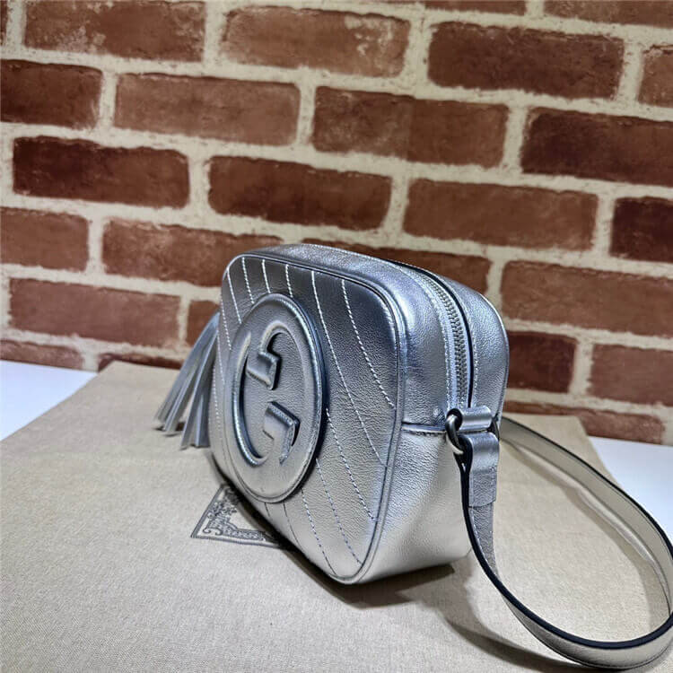 1:1 Mirror QualityReplica Gucci Blondie Small Shoulder BagStyle:742360 AACBO 8106Metallic silver leatherRound Interlocking G leather patchSide tassel detailAdjustable shoulder strap with 21.4″ dropZipper closure8.3″W x 6.1″H x 3.1″D