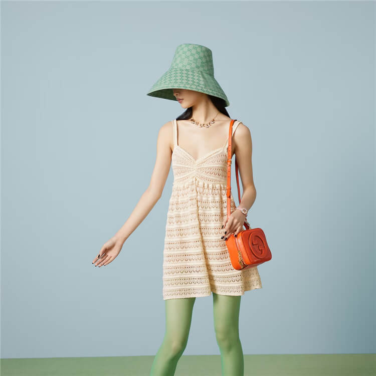 1:1 Mirror Quality Replica Gucci Blondie Top Handle Bag Style:744434 1IV0G 7519 Orange leather Round Interlocking G leather patch Top handle with 3.1″ drop Adjustable shoulder strap with 20.5″ drop Double zipper closure with Round Interlocking G 6.7″W x 5.9″H x 3.5″D The model is 5’8″ tall