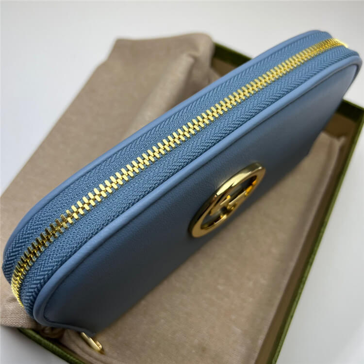 1:1 Mirror QualityReplica Gucci Blondie Zip Around WalletStyle:725216 UXX0G 4914Light blue leatherShiny gold-toned hardwareMoiré liningRound Interlocking GInside: 12 credit card slots,3 bill compartments and 1 zipper coin pocketZip closure8.3″W x 4.3″H