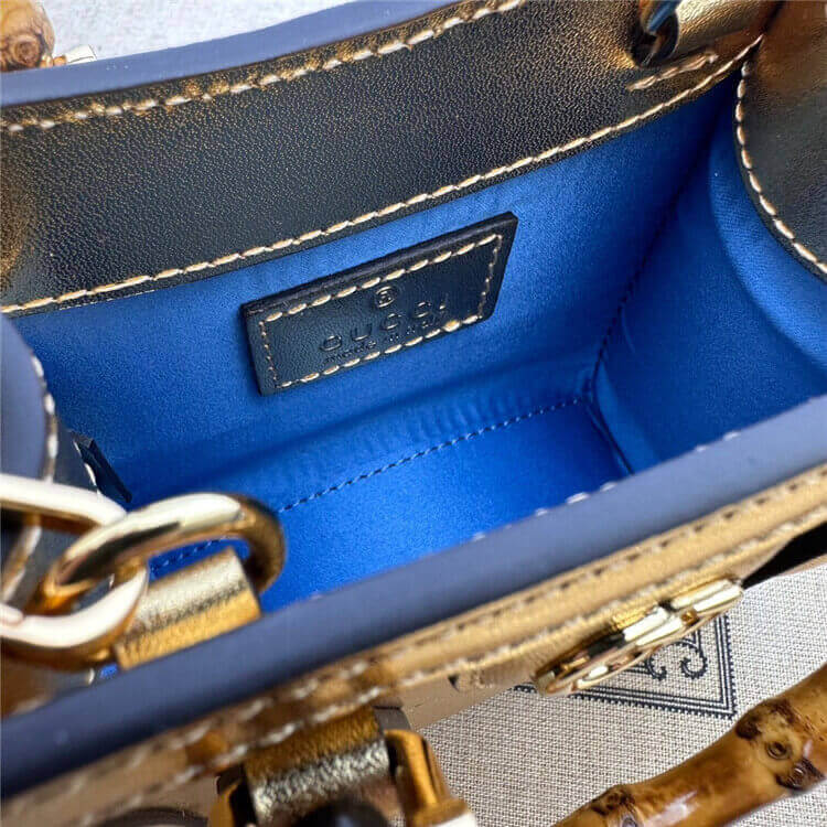 1:1 Mirror QualityReplica Gucci Diana Super Mini BagStyle:760251 1LD0G 8024Metallic gold laminated leatherGold-toned hardwareSilk satin liningDouble GBamboo top handle with 3.5cmChain shoulder strap with 56cm dropW12cm x H16.5cm x D6cm