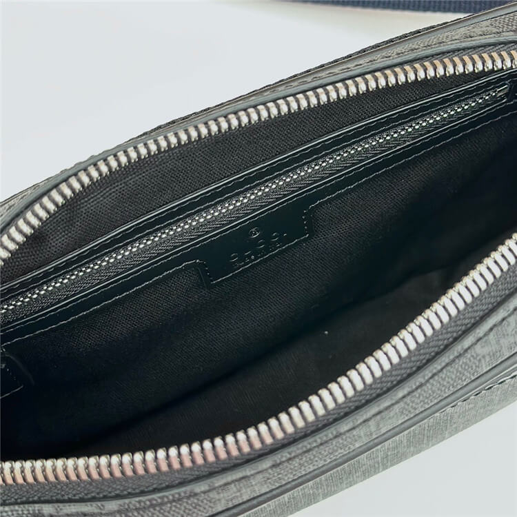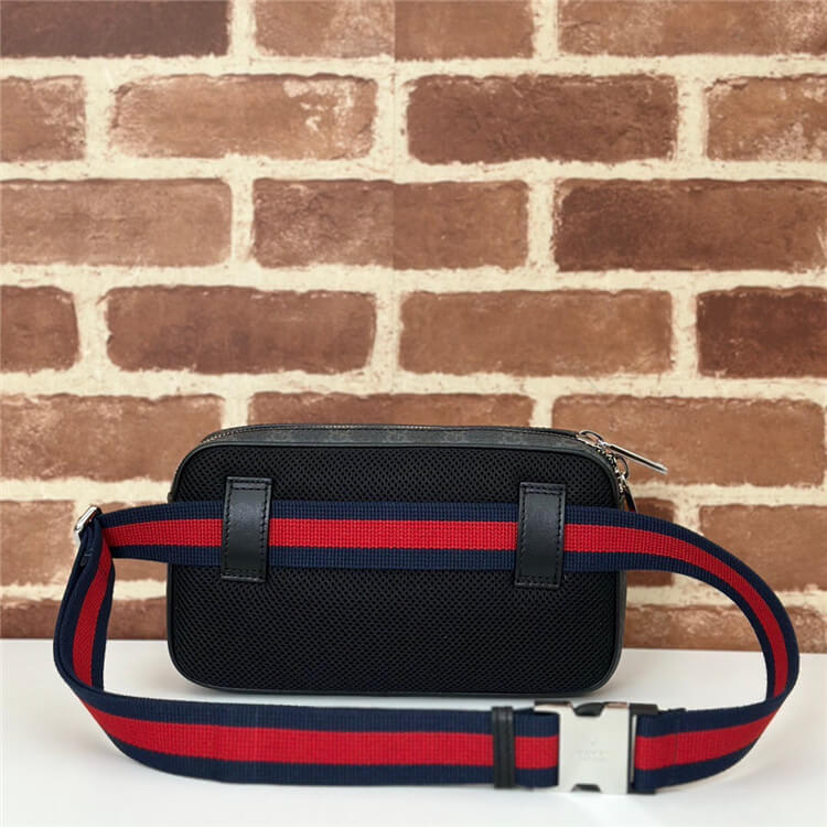 1:1 Mirror Quality Replica Gucci GG Belt Bag With Zip Pocket Style:792094 FADJM 1043 Black GG Supreme canvas Black leather trim Blue and red Web Cotton linen lining Front zip pocket Adjustable strap with 52cm drop Zip and buckle closure W24cm x H14cm x D5.5cm